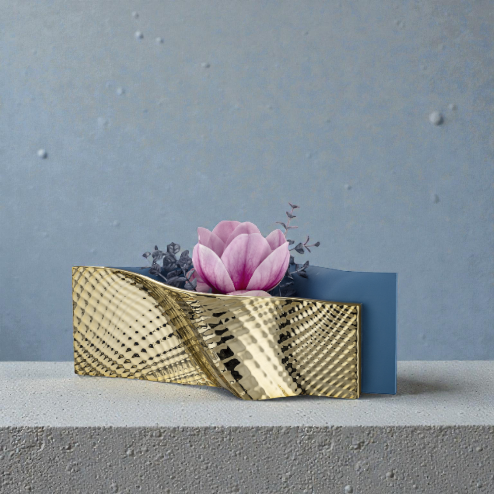 Il centrotavola Ophis 35×18 nella versione blu e oro è un complemento d’arredo dal forte impatto visivo. Il blu intenso dona profondità ed eleganza, mentre le finiture dorate aggiungono luminosità e prestigio, creando un perfetto equilibrio tra modernità e raffinatezza.