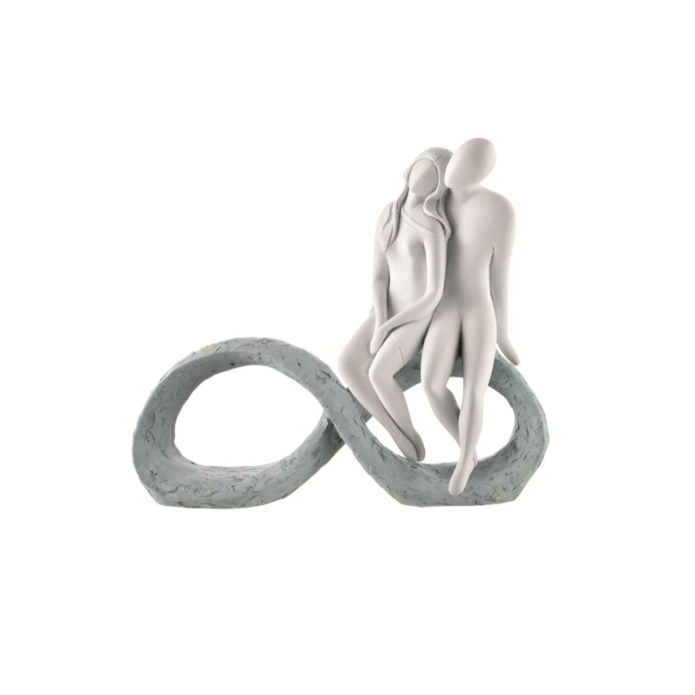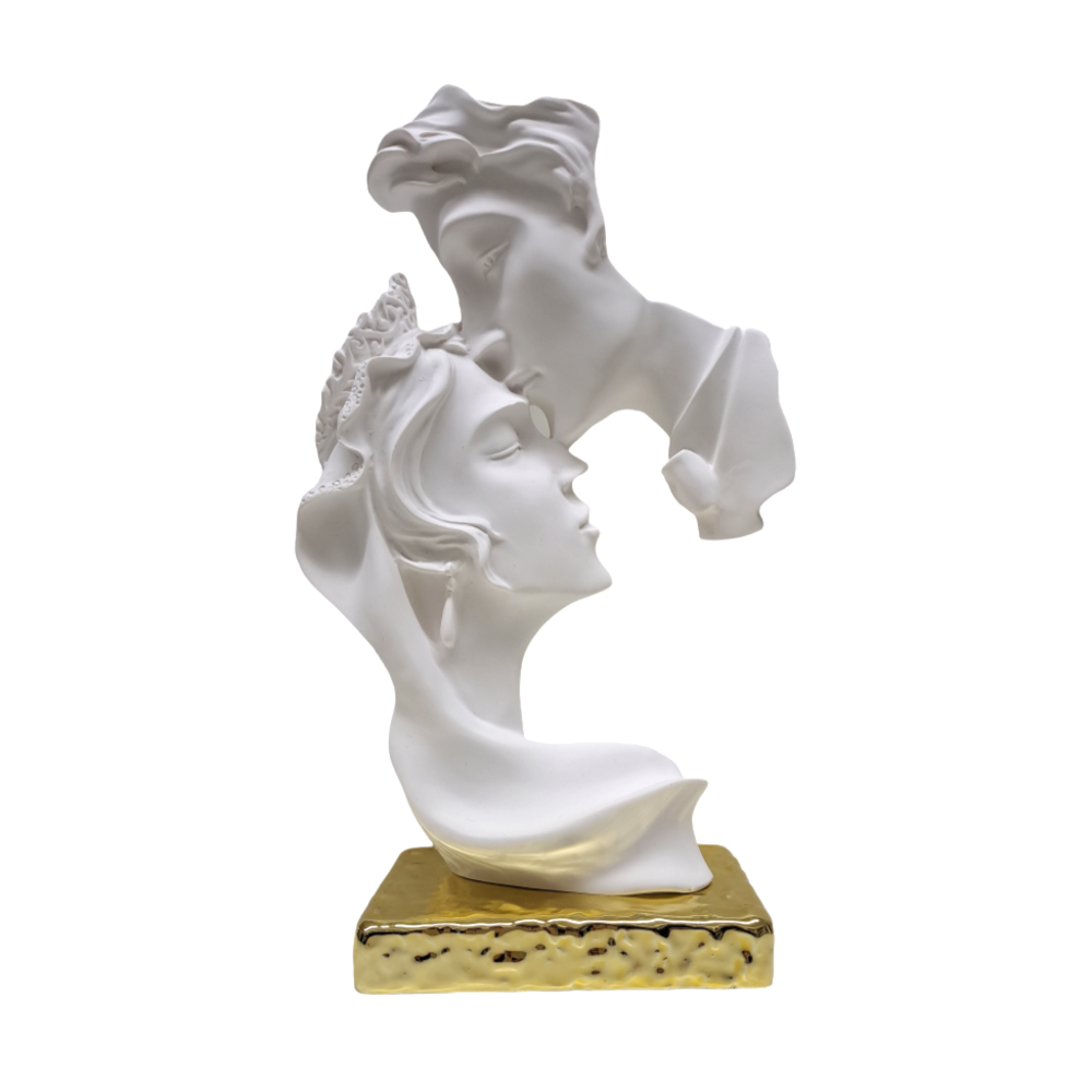 Coppia sposi realizzata in ceramica con base oro che dona luminosità e impreziosisce l’articolo. Un simbolo moderno che indica amore e unione. Dimensione: h. 23 cm