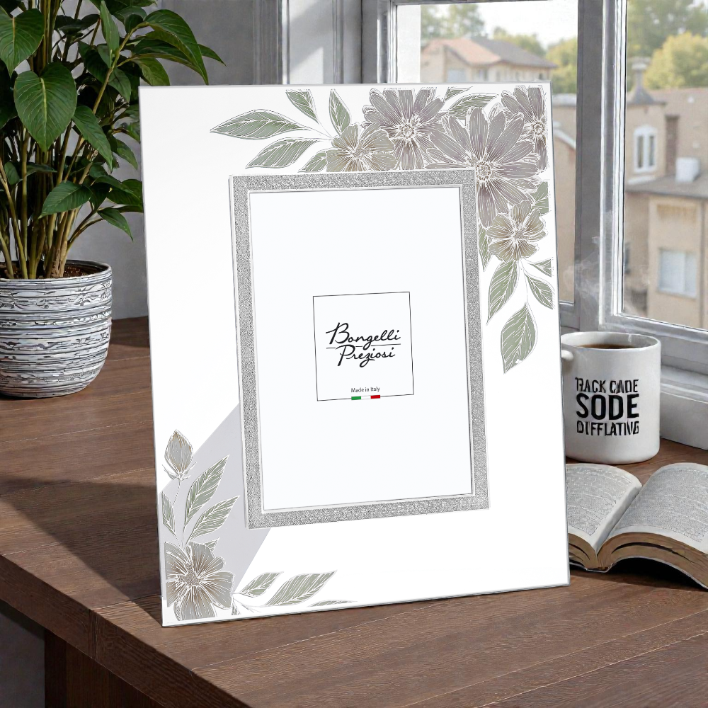 Portafoto in vetro con fiori argento 13×18 – Bongelli Preziosi