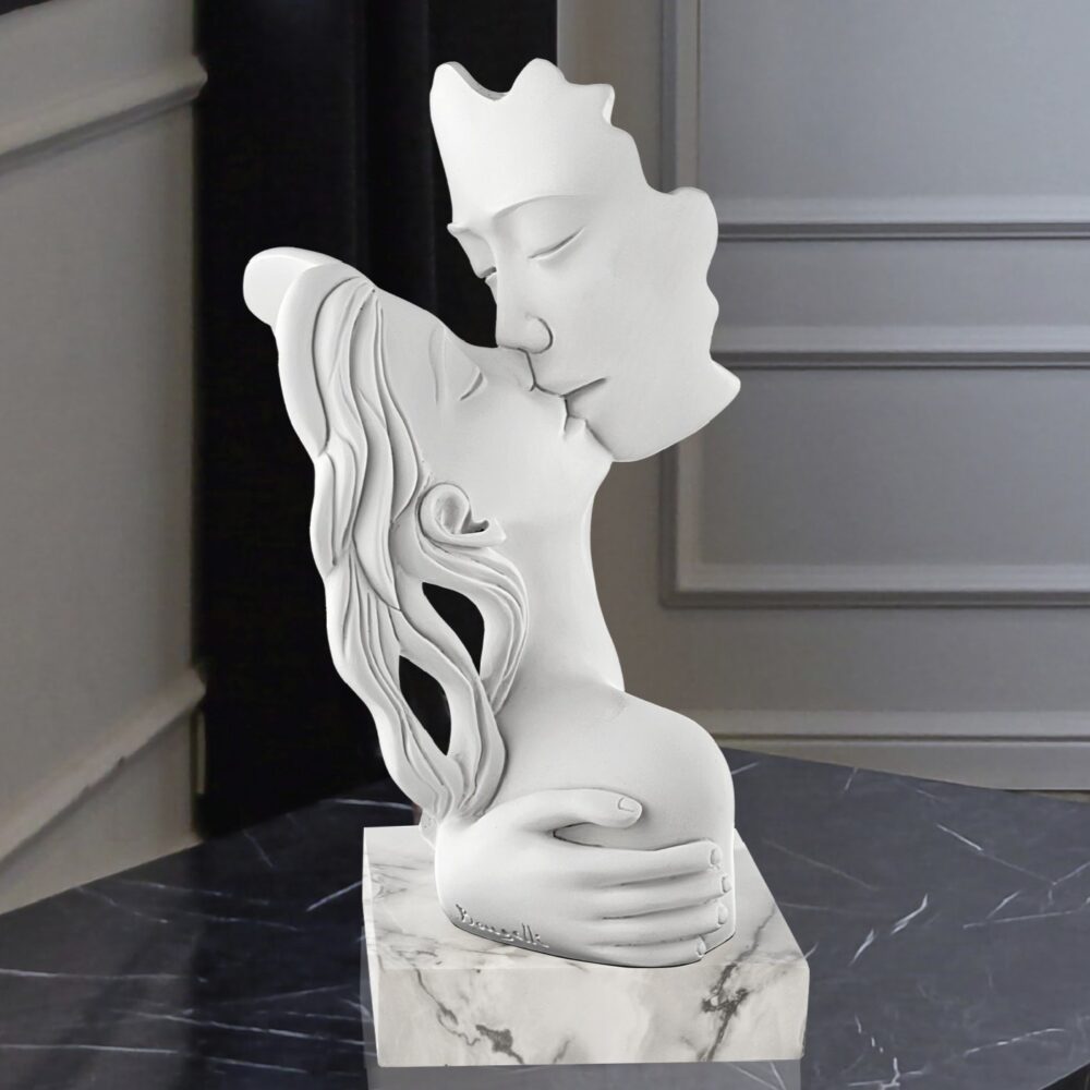La scultura bacio è un elemento decorativo ideale per ogni ambiente, dalla casa all’ufficio. Può essere posizionata su un tavolo, una mensola o un mobile, diventando un punto focale di grande impatto visivo. La finitura lucida e i dettagli raffinati rendono questa scultura un’opera d’arte che cattura l’attenzione di chiunque la osservi.