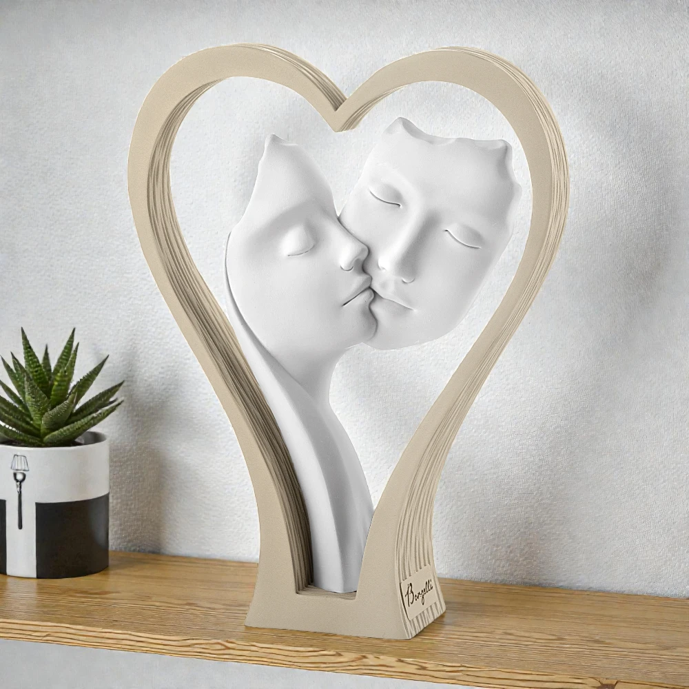 La Coppia Cuore Alta Visi H18 Nocciola di Bongelli Preziosi è una creazione elegante e dal forte valore simbolico, pensata per rappresentare l’unione, l’affetto e la complicità. Le due figure stilizzate, scolpite con linee morbide e armoniose, si fondono in un abbraccio che richiama la forma del cuore, diventando un oggetto decorativo di grande impatto emotivo.