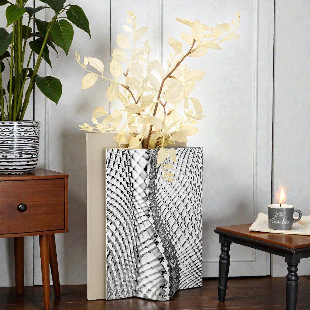 Il vaso Ophis modello H.30 nella raffinata combinazione nocciola e argento è un complemento d’arredo pensato per chi ama atmosfere calde e sofisticate. Il colore nocciola dona naturalezza e accoglienza, mentre le finiture argento aggiungono un tocco luminoso e moderno. Il risultato è un oggetto decorativo equilibrato, capace di valorizzare diversi stili di arredamento.