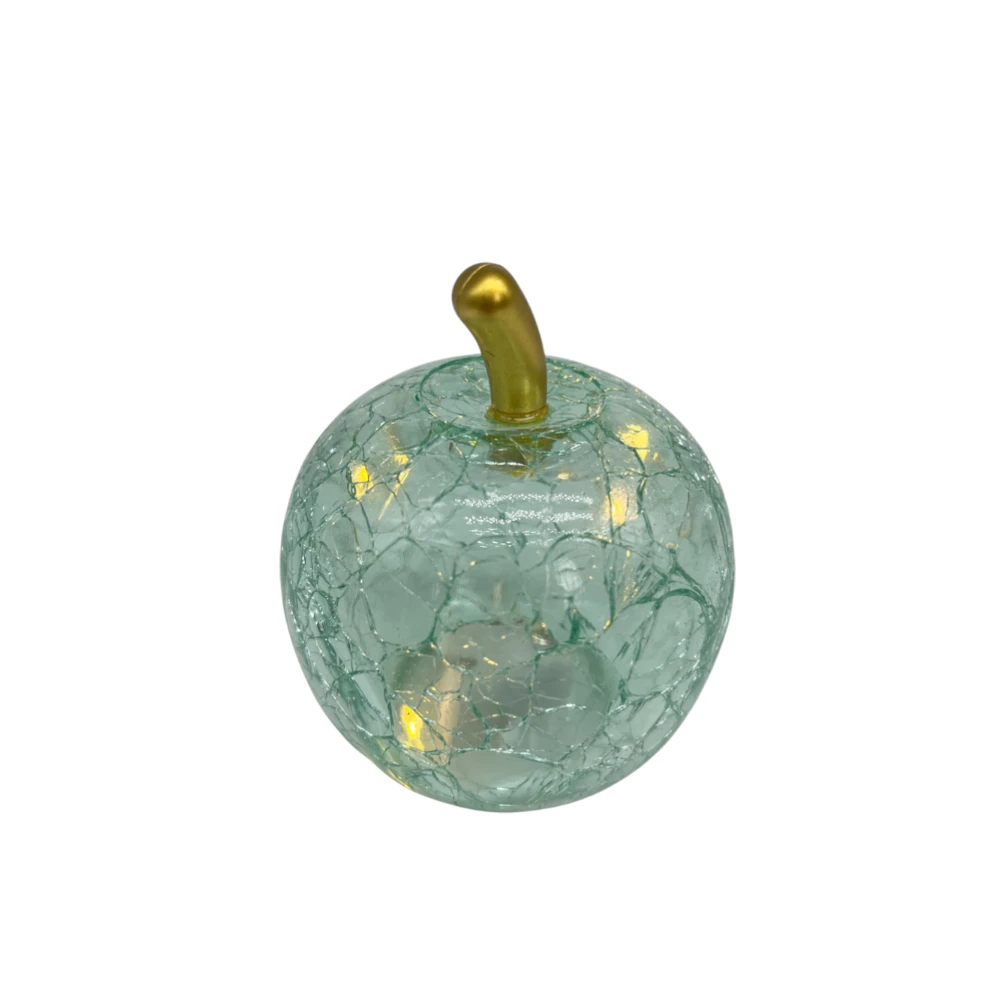 La lampada è realizzata in vetro decorativo con finitura effetto craquelé, che crea una texture unica e affascinante. Le venature del vetro, unite alla tonalità verde delicata, donano profondità e carattere all’oggetto, mentre il piccolo gambo superiore con finitura dorata aggiunge un dettaglio prezioso e sofisticato. Ogni lampada risulta leggermente diversa, valorizzando l’aspetto artigianale del prodotto.