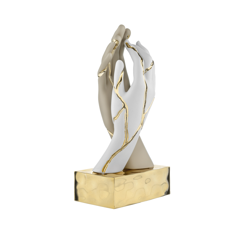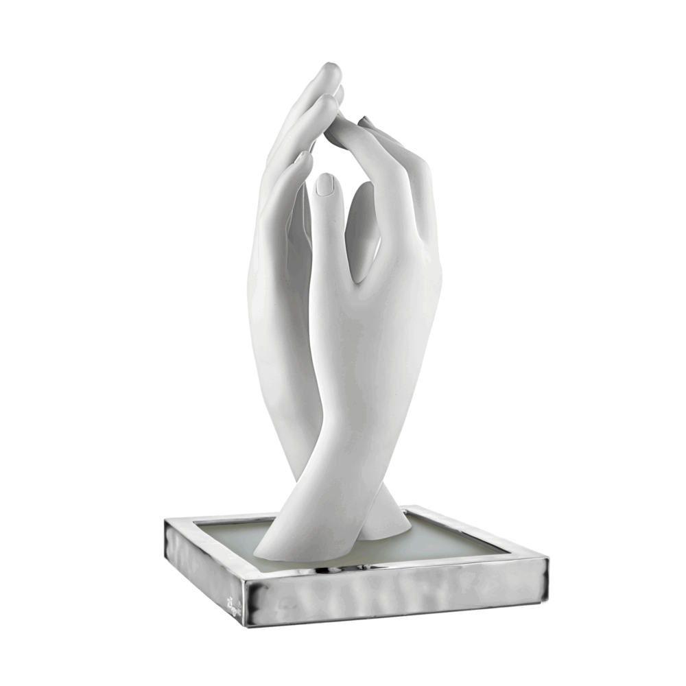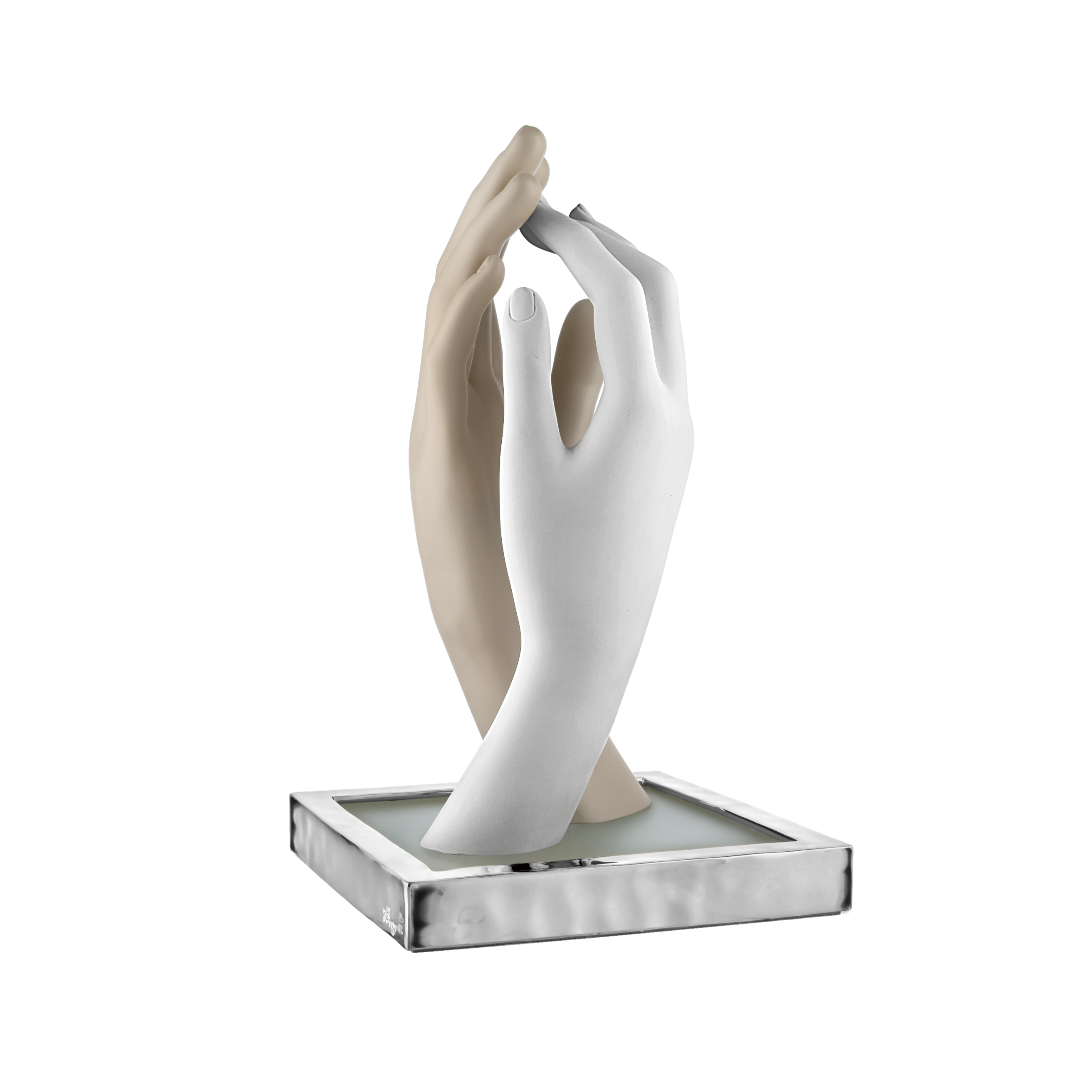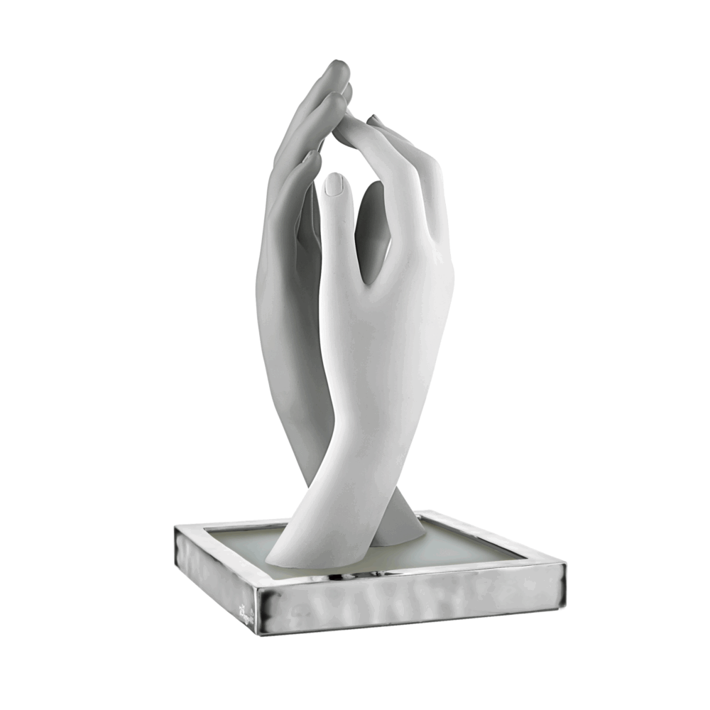 La scultura è realizzata con materiali di alta qualità, garantendo durata e resistenza nel tempo. Le mani intrecciate sono curate nei minimi particolari, dando vita a una lampada unica nel suo genere. La base con il led integrato è robusta e stabile, assicurando un uso sicuro e affidabile.