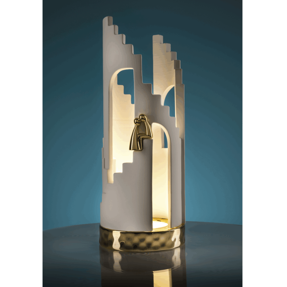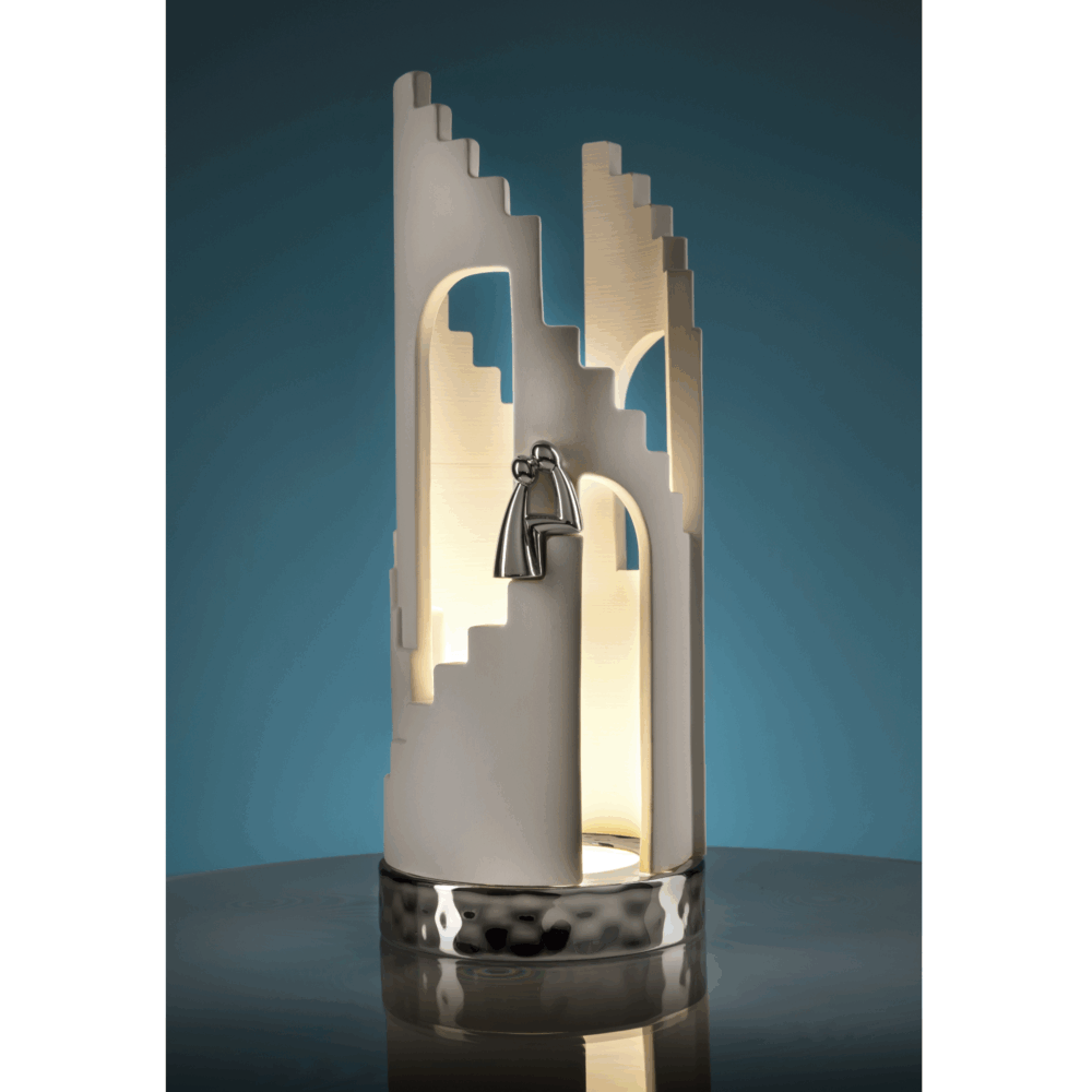 La base della lampada è dotata di un led, che emette una luce soffusa e calda. Questa illuminazione delicata è perfetta per creare un’atmosfera accogliente e rilassante. La lampada è ideale per essere posizionata su un tavolo da soggiorno, una scrivania o un comodino, aggiungendo un tocco di eleganza e raffinatezza.