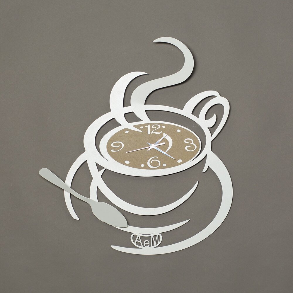 L’orologio da parete è pensato per riempire grandi ambienti, loft e open space che hanno bisogno di un elemento di forte carattere stilistico: gli orologi firmati Arti & Mestieri sono perfetti per tutte le idee. Al Bar è l’orologio da appendere in cucina firmato Arti e Mestieri che non sapevi di desiderare. Perfetto se si ha bisogno di un complemento da appendere in una cucina, in una sala da pranzo o in uno spazio lavorativo riservato alla pausa caffè. L’ispirazione è chiara, e il design la rispecchia. La forma è quella di una tazzina da caffè fumante. Il quadrante è sulla superficie della bevanda, al centro. Come ulteriore decorazione anche un piccolo cucchiaio posato sul piattino. Molto simpatico anche lo stile scelto per i numeri arabi presenti. Dimensione: 52 x h. 55 cm.