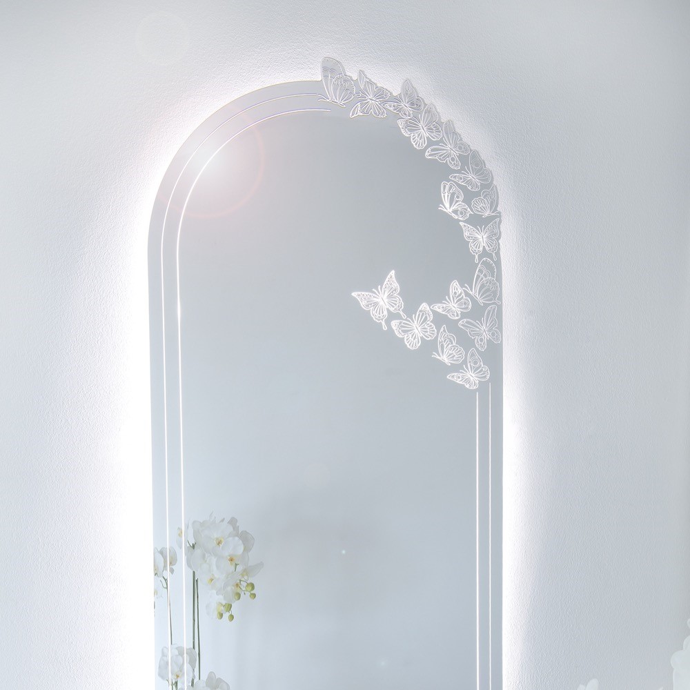 Il design minimalista dello specchio luminoso si adatta perfettamente a qualsiasi tipo di arredamento, dal contemporaneo al classico, aggiungendo un tocco di raffinatezza e luminosità. La cornice in plexiglass, oltre a essere resistente e leggera, contribuisce a riflettere la luce, amplificando la percezione dello spazio e rendendo gli ambienti più ariosi e luminosi.