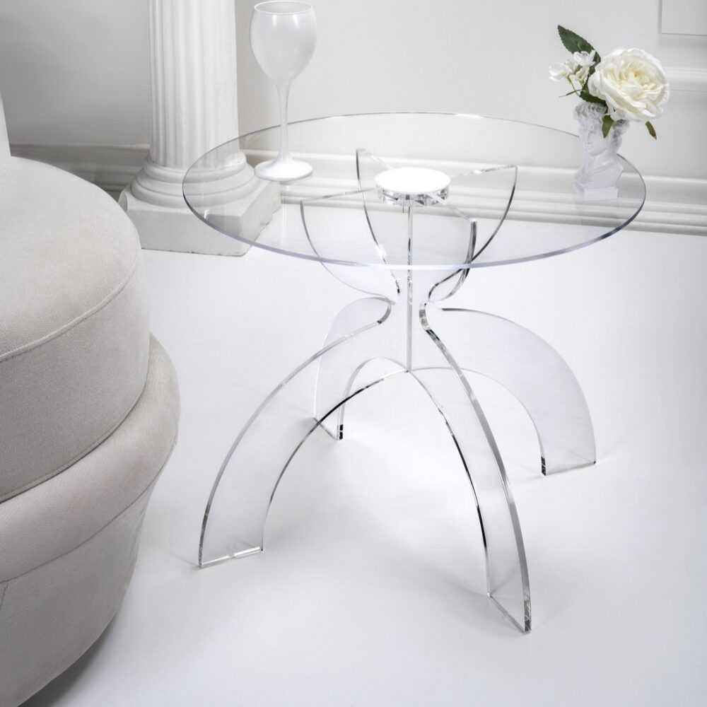 Il tavolino moderno trasparente tondo è versatile e può essere utilizzato in diverse aree della casa: in soggiorno come tavolino da caffè, in camera da letto come comodino o in uno studio come appoggio funzionale e di design. La trasparenza del plexiglass lo rende ideale per chi desidera un complemento d’arredo che si adatti a qualsiasi stile, senza appesantire lo spazio.