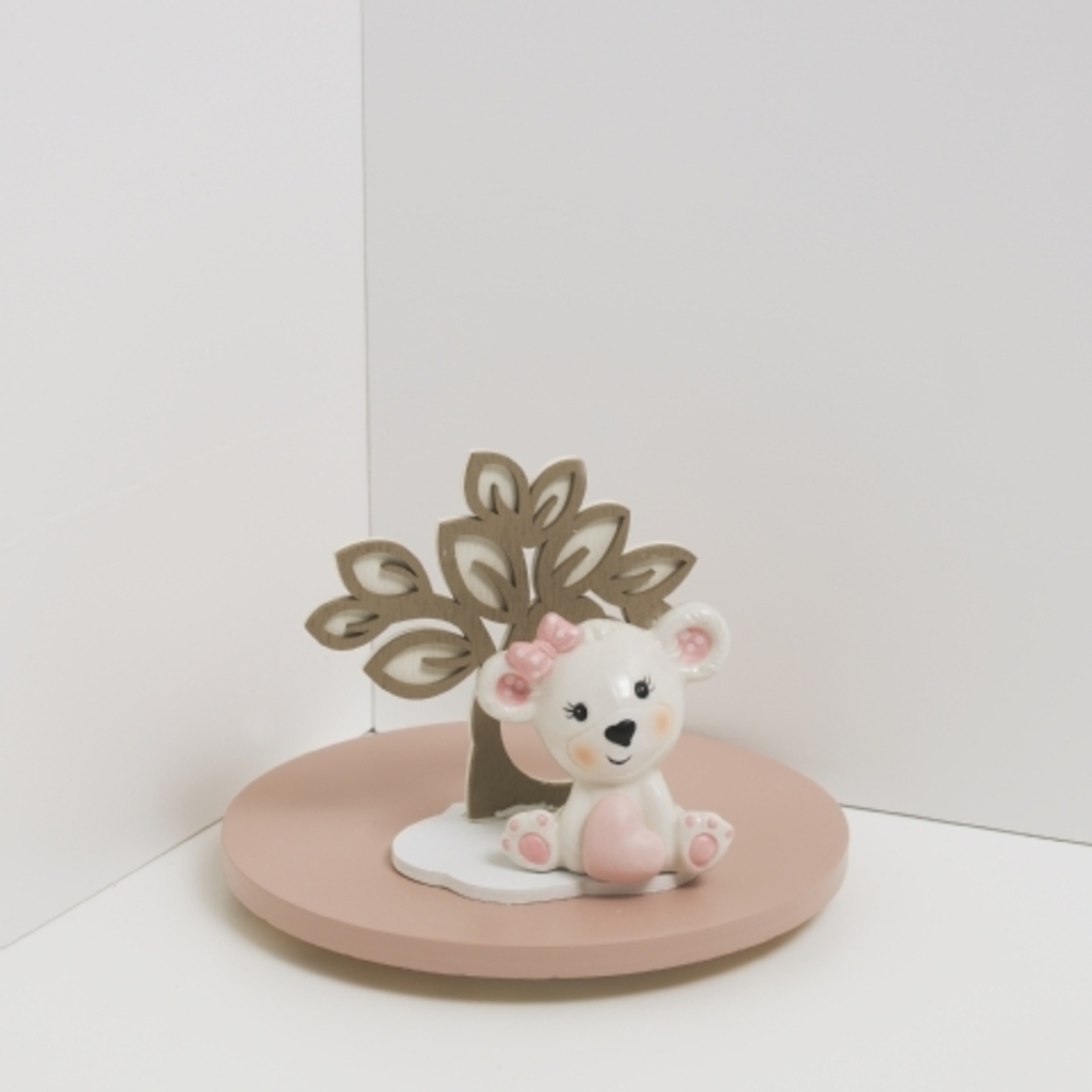 Bomboniere Solidali Quadrifoglio Orsetto rosa con decorazioni assortite Collezione Gioiosa