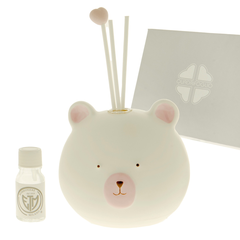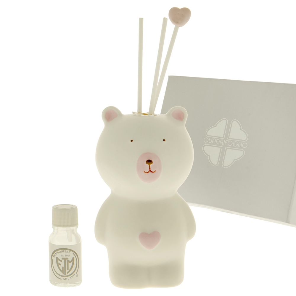 Diffusore forma orso con dettagli celeste; la simpatia dell’articolo e la delicatezza dei colori lo rendono perfetto come bomboniere per i più piccoli. Dimensione: 10 x h. 9 cm
