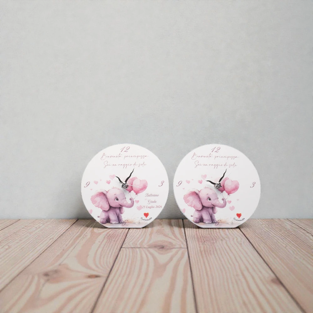 Grazie al suo forte significato simbolico e alla sua utilità quotidiana, l’Orologio Elefante Rosa 15 cm rappresenta una scelta apprezzata come bomboniera per nascita e battesimo. È un ricordo pensato per durare nel tempo, capace di conservare la memoria dell’evento e di accompagnare la crescita del bambino.