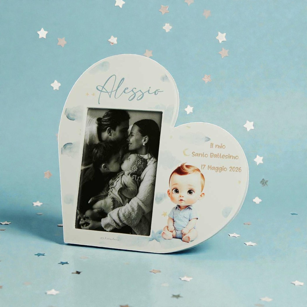 Il porta foto cuore dalle sfumature colorate chiare è una bomboniera raffinata e originale, pensata per chi desidera regalare un oggetto che unisca estetica e significato. Perfetto per matrimoni, battesimi, comunioni e anniversari, rappresenta un dono che celebra l’amore e lascia agli ospiti un ricordo prezioso e duraturo. Inoltre, il porta foto cuore si può personalizzare con il nome del festeggiato.
