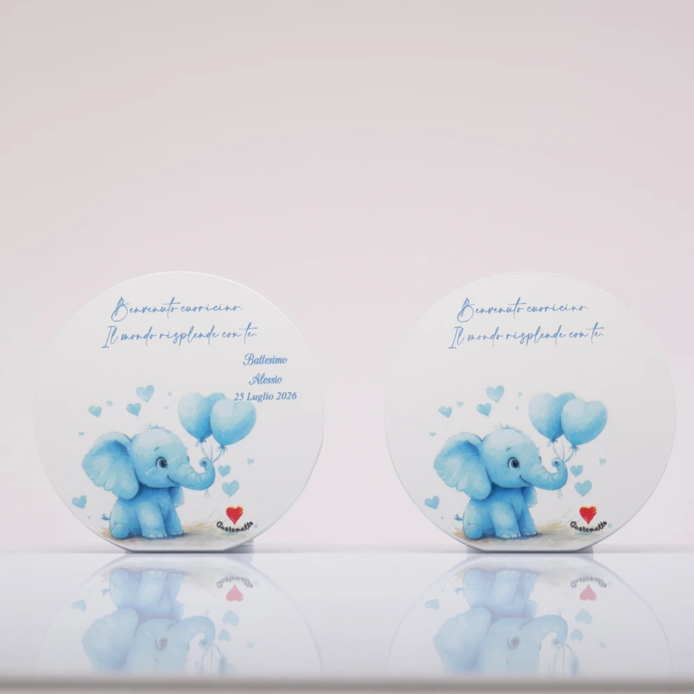 Il Quadretto Elefante Celeste 10 cm Cuorematto è una bomboniera elegante e delicata, pensata per celebrare la nascita o battesimo con stile e significato. L’elefante simboleggia protezione, fortuna e forza, mentre il colore celeste aggiunge un tocco di tenerezza, rendendo questo quadretto un dono perfetto da conservare come ricordo speciale.