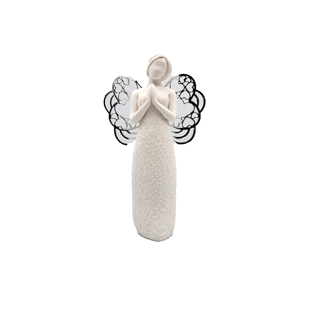 Angelo bianco con decorazione forma fiore, i dettagli sono curati e la semplicità dell’articolo lo rende perfetto per chi vuole celebrare la solennità del momento. Dimensione: h. 12 cm