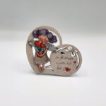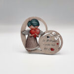 Bomboniere Bongelli Preziosi Angeli dei sogni formina cuore lei è realizzata in legno con angelo colorato applicazione in argento e un bellissimo messaggio “La Bellezza è nella luce del Cuore”. Dimensione cm 13 x 12.