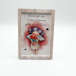 Bomboniere Bongelli Preziosi Angeli dei sogni quadretto cuore lei è realizzato in legno con angelo colorato applicazione in argento e un bellissimo messaggio “Qualunque sia il tuo Cammino fallo con il cuore”. Dimensione cm 12,5 x17,5.