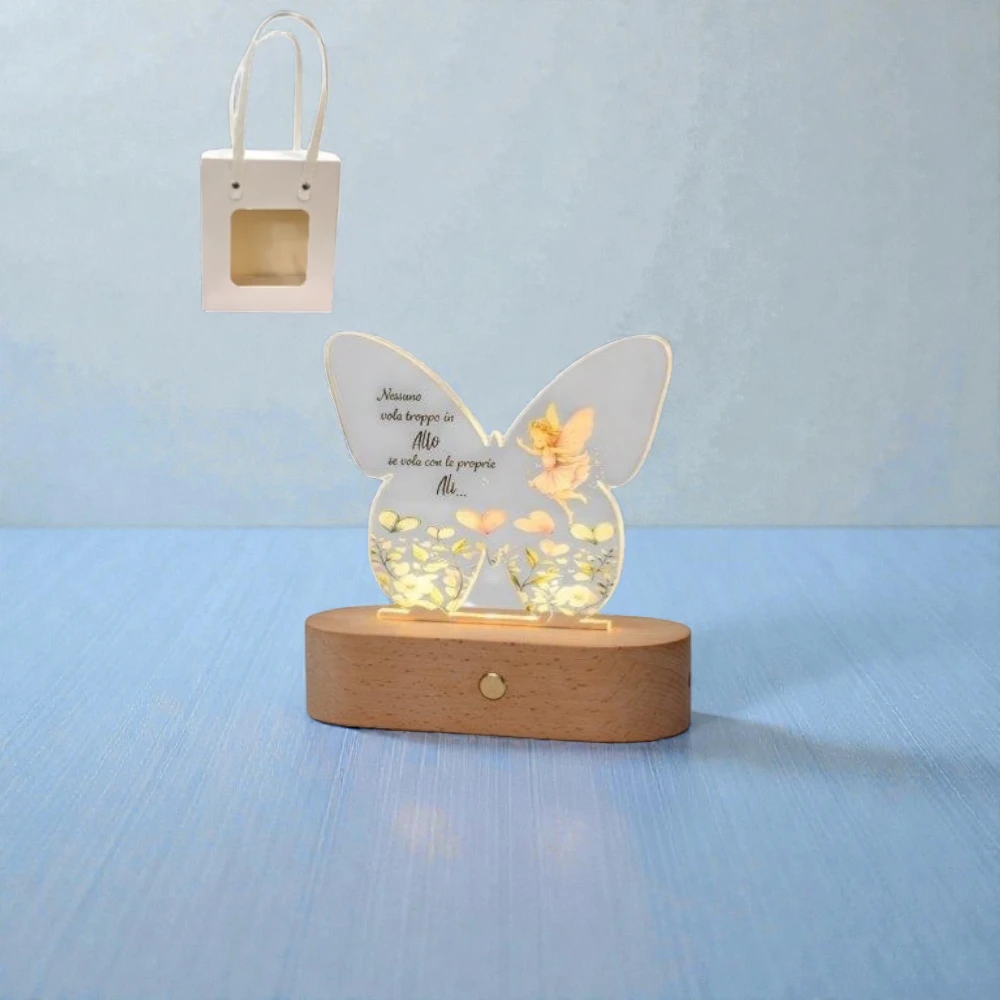 Lampada LED decorativa a forma di farfalla con frase ispirazionale