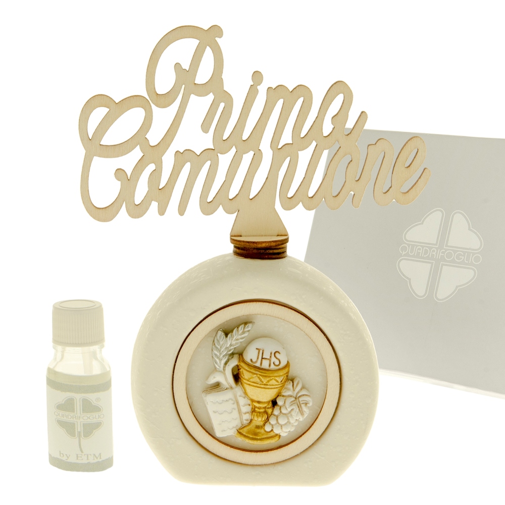 Diffusore con icona della Santa Cresima con scritta che sprigiona la profumazione contenuta nel kit essenza. Dimensione: 8×15 cm. Guarda qui tutti gli articoli Quadrifoglio e scegli il tuo preferito!