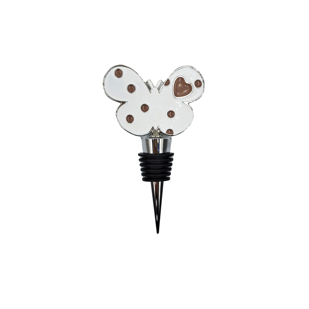 Apribottiglia bicolore (bianco e beige) con dettagli curati. L’articolo ispira dolcezza grazie alla delicatezza delle forme e, pertanto, può essere scelto per tutte le cerimonie, sia per i piccoli che per i grandi.