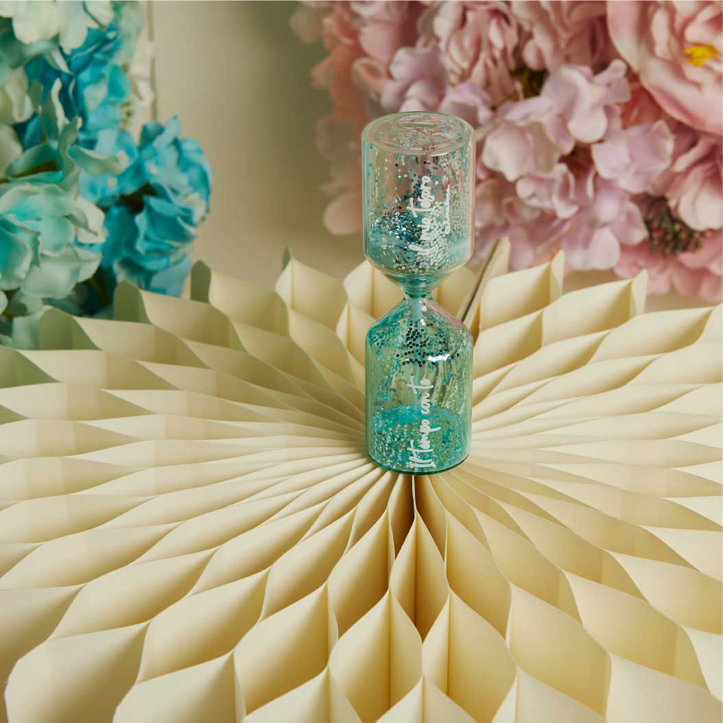 Al centro della clessidra colorata è presente una frase dolce e romantica, simbolo di affetto e unione. Questo dettaglio romantico la rende perfetta per celebrare momenti speciali e per trasmettere emozioni autentiche. Ogni volta che la sabbia scorre, ricorda la bellezza del tempo condiviso con le persone amate.