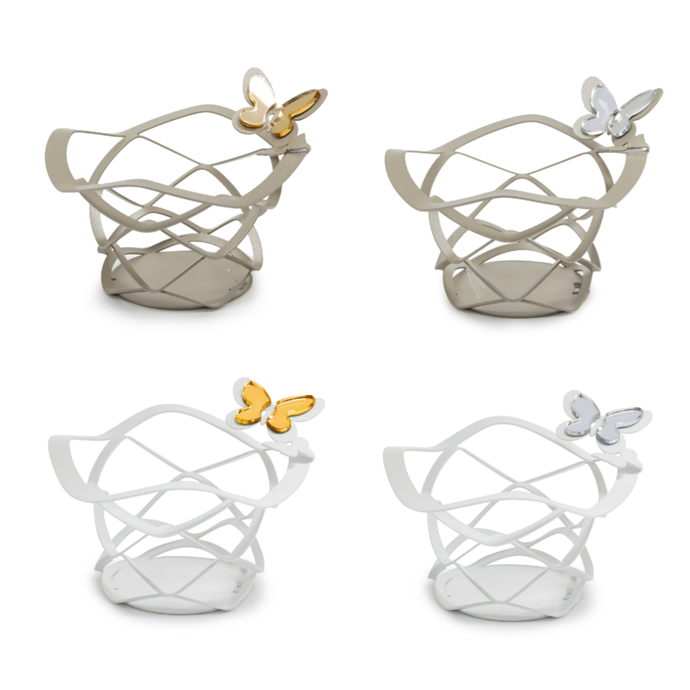 Coppia stilizzata bianca con base color argento che dona rilievo all’articolo. Un elemento elegante e raffinato, adatto agli stili ed ambienti moderni. Dimensione: 14×11 cm