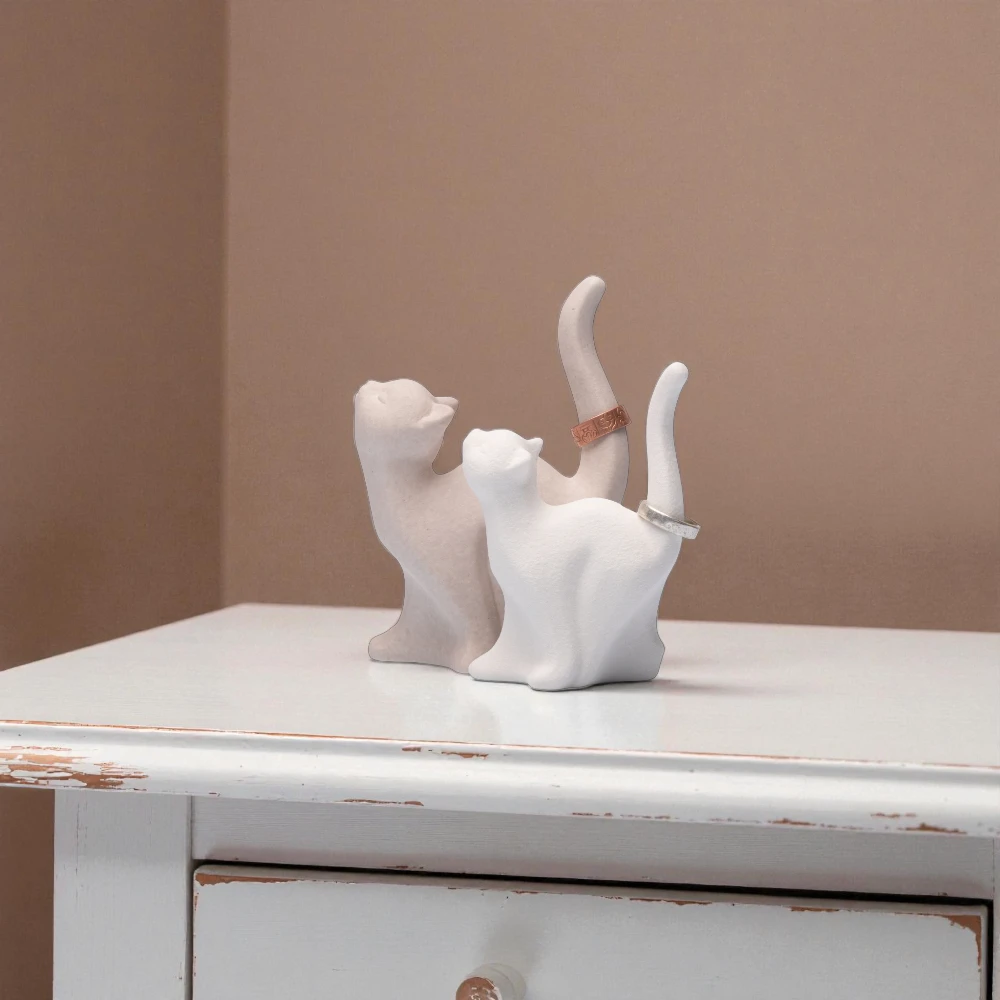 La coppia di gatti è un simbolo universale di amore, equilibrio e complicità. Questo portanelli non è solo un oggetto decorativo, ma un vero e proprio messaggio di affetto e dolcezza. Ogni acquisto Cuorematto sostiene inoltre progetti solidali, rendendo il gesto di regalare o acquistare questo prodotto ancora più significativo.