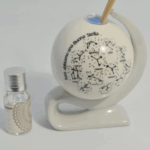 Coppia in porcellana bianca con cuore in resina argentata e mappamondo sullo sfondo, perfetta per celebrare il romanticismo nel giorno del matrimonio; completo di confezione e Shoppers con decoro fiori traforato. Dimensione: h 10 cm