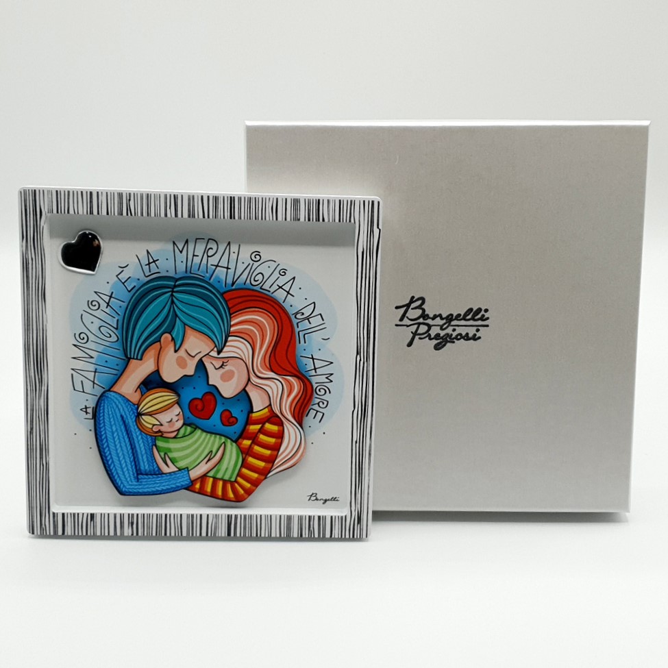Il cuore è sempre una decorazione romantica e ideale per chi cerca un dono semplice ed elegante. In questa versione Bongelli ha aggiunto anche l’albero della vita, simbolo di unione e le decorazioni e i colori lo rendono adatto ad ogni ambiente. Dimensione: 12×11 cm