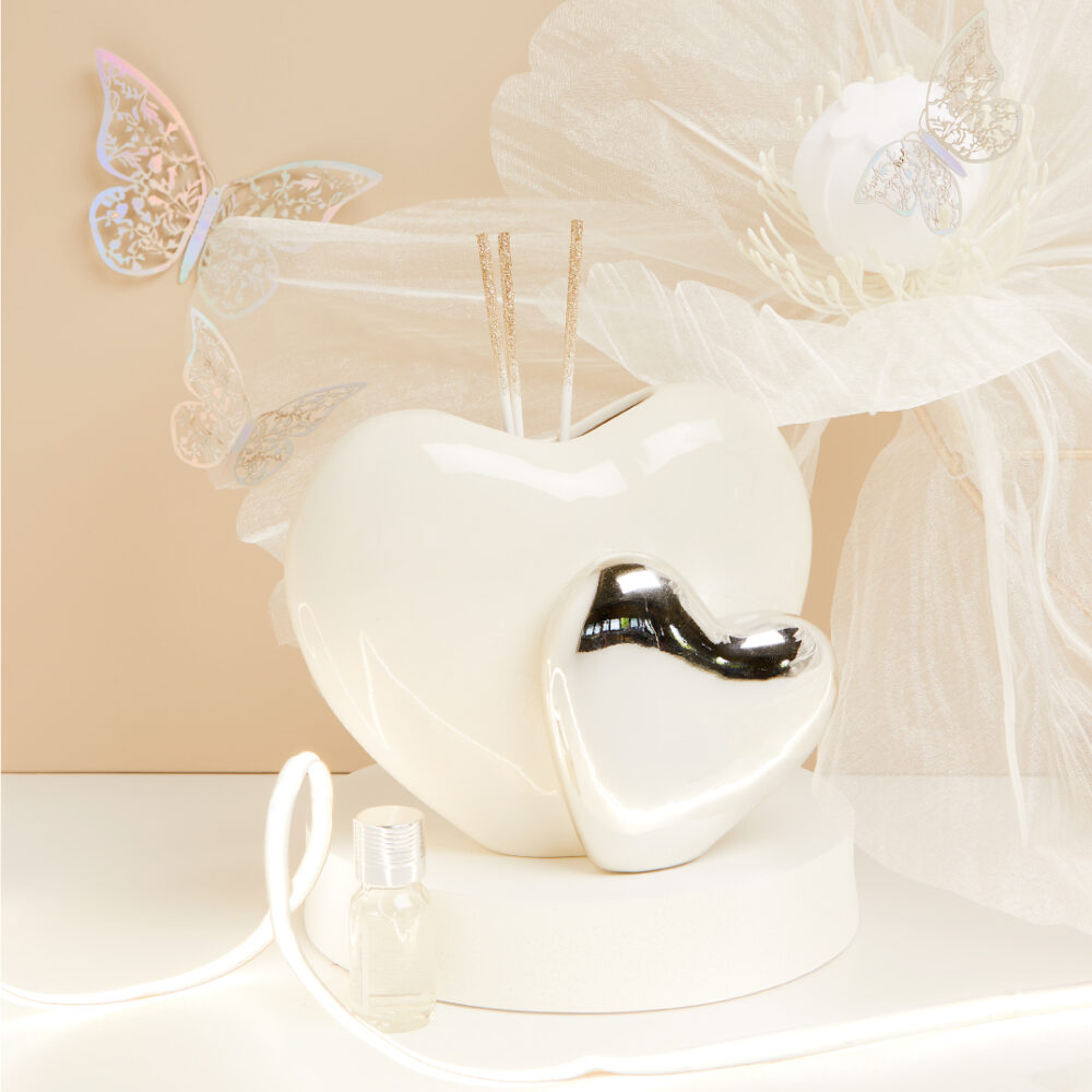 Il diffusore forma cuore è ideale per matrimoni, battesimi e altre occasioni speciali. Un dono che unisce dolcezza ed eleganza, lasciando un segno indelebile nei cuori di chi lo riceve. Con questo dono, ogni evento si arricchisce di stile e raffinatezza. Un’idea regalo perfetta per chi ama i dettagli raffinati e gli oggetti unici.