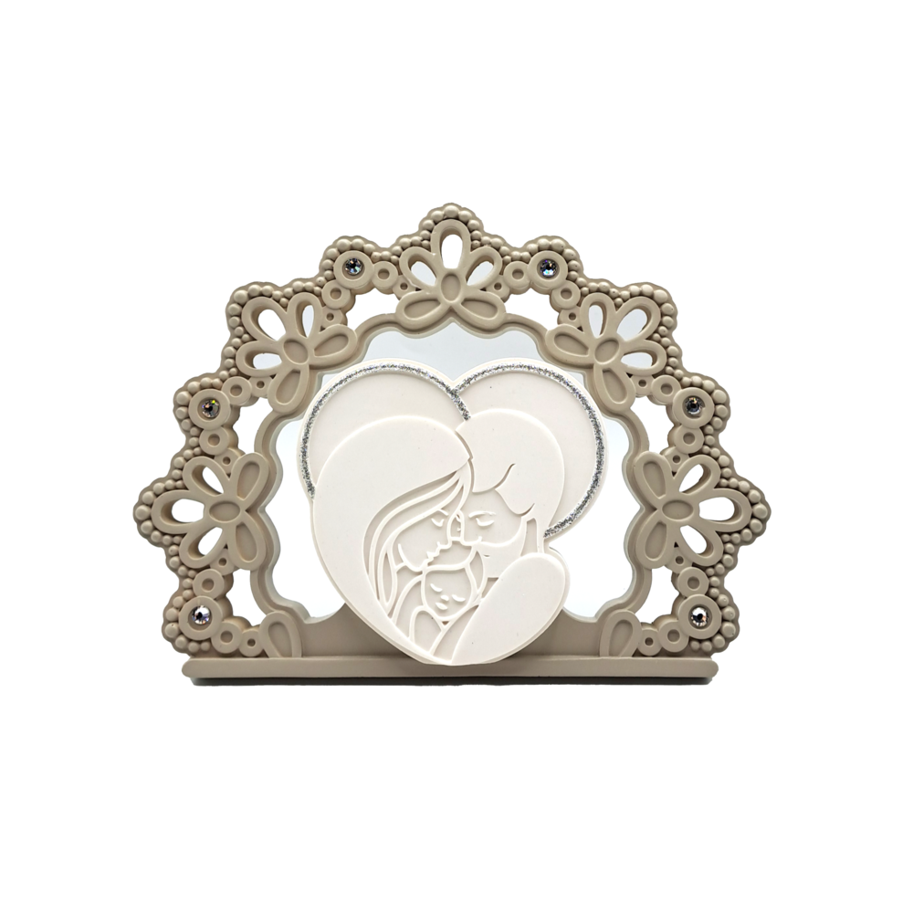 Formina cuore con icona della Sacra Famiglia e base di appoggio inserita al lato posteriore. L’articolo è impreziosito da una cornice glitter lungo il bordo. Dimensione: 8,5×8,5 cm. Guarda qui tutti gli articoli Memory e Bongelli Preziosi e scegli il tuo preferito!