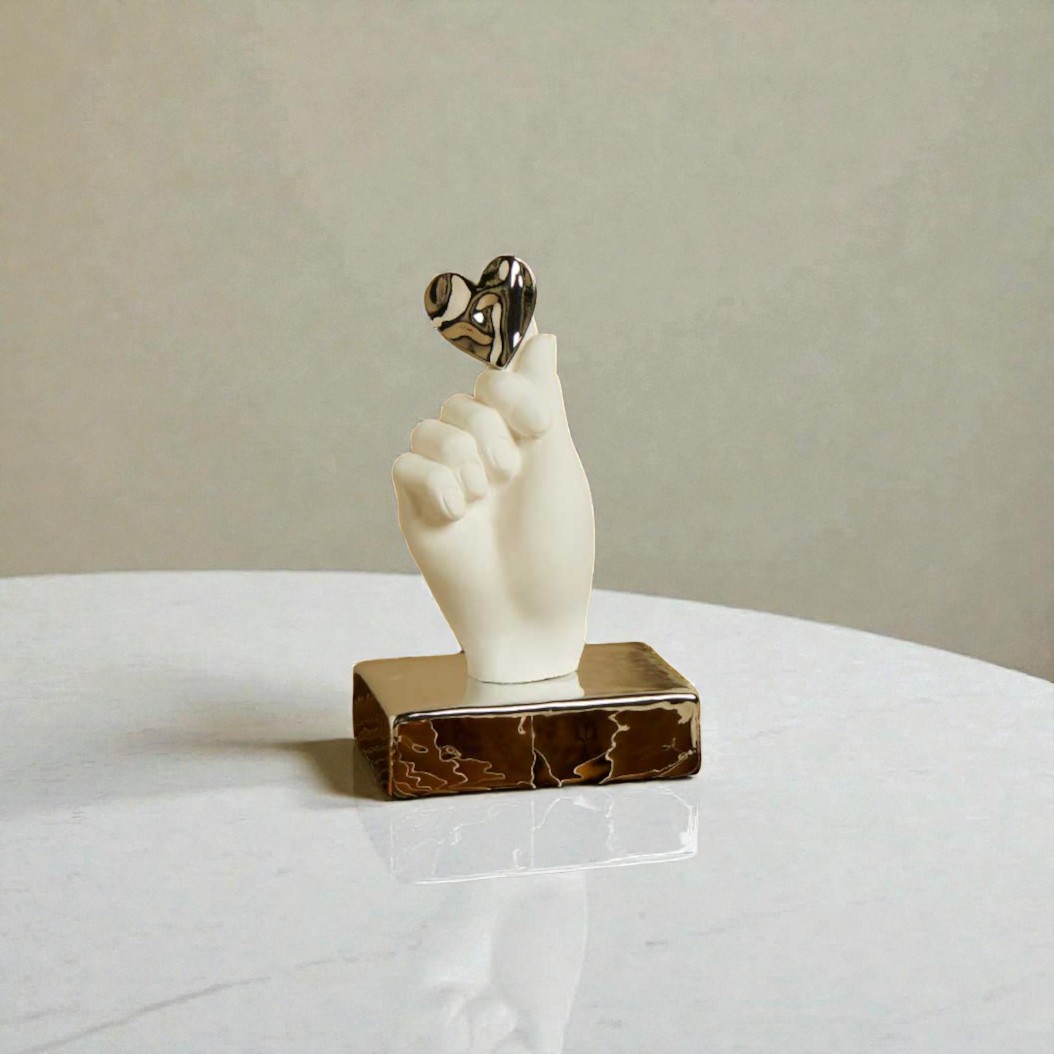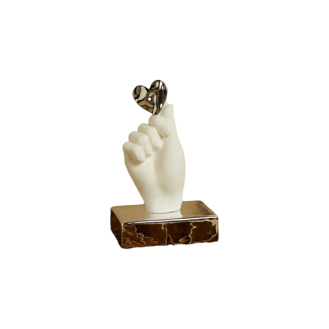 La mano gesso si distingue per la sua forma delicata e armoniosa, impreziosita da un cuore colorato che ne esalta il significato. Poggiata su una base rettangolare lucida, diventa un complemento d’arredo versatile e sofisticato, capace di adattarsi a qualsiasi ambiente e di trasmettere emozioni autentiche.