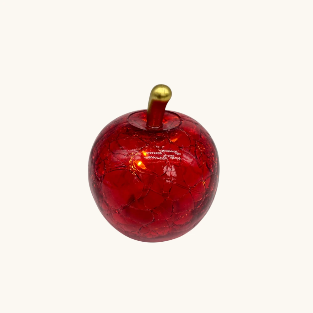 La mela LED in vetro craquelè è una idea regalo raffinata per laurea, anniversari, bomboniere importanti e festività. Il suo design simbolico unito alla luce delicata la rende un oggetto apprezzato e versatile, capace di impreziosire ogni spazio con stile ed eleganza.