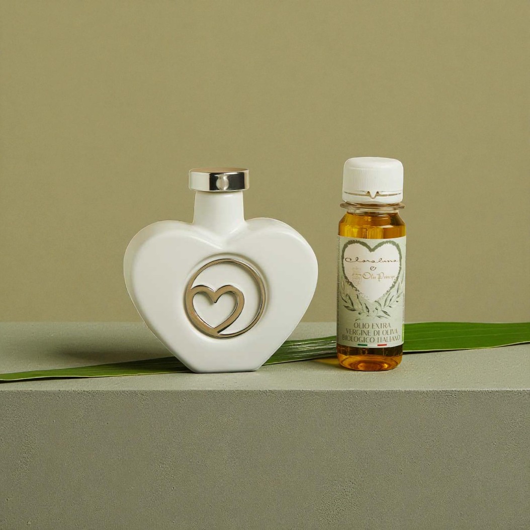 Oliera cuore silver con olio – Bomboniere Claraluna