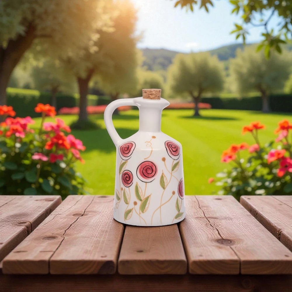 Realizzata in ceramica smaltata di alta qualità, questa oliera è resistente e facile da pulire. Il beccuccio consente un dosaggio preciso dell’olio, mentre la capacità maggiore la rende ideale per famiglie o per chi ama condividere la tavola in compagnia.