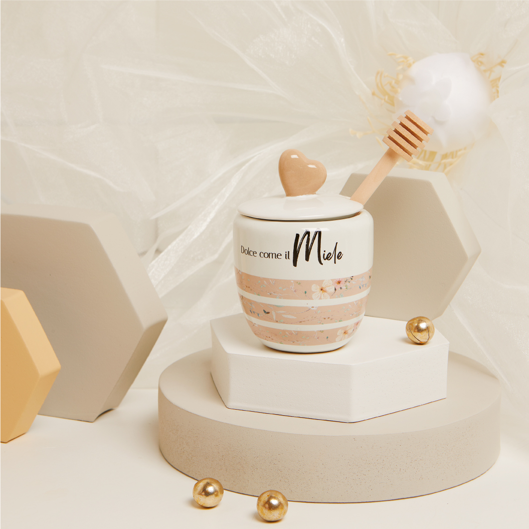 Oltre al delizioso miele, il portamiele è un ricordo prezioso. Dopo essere stato gustato, può essere riutilizzato come oggetto decorativo o contenitore per piccoli tesori. Un regalo che continua a donare gioia, mantenendo vivo il ricordo del momento speciale in cui è stato ricevuto.