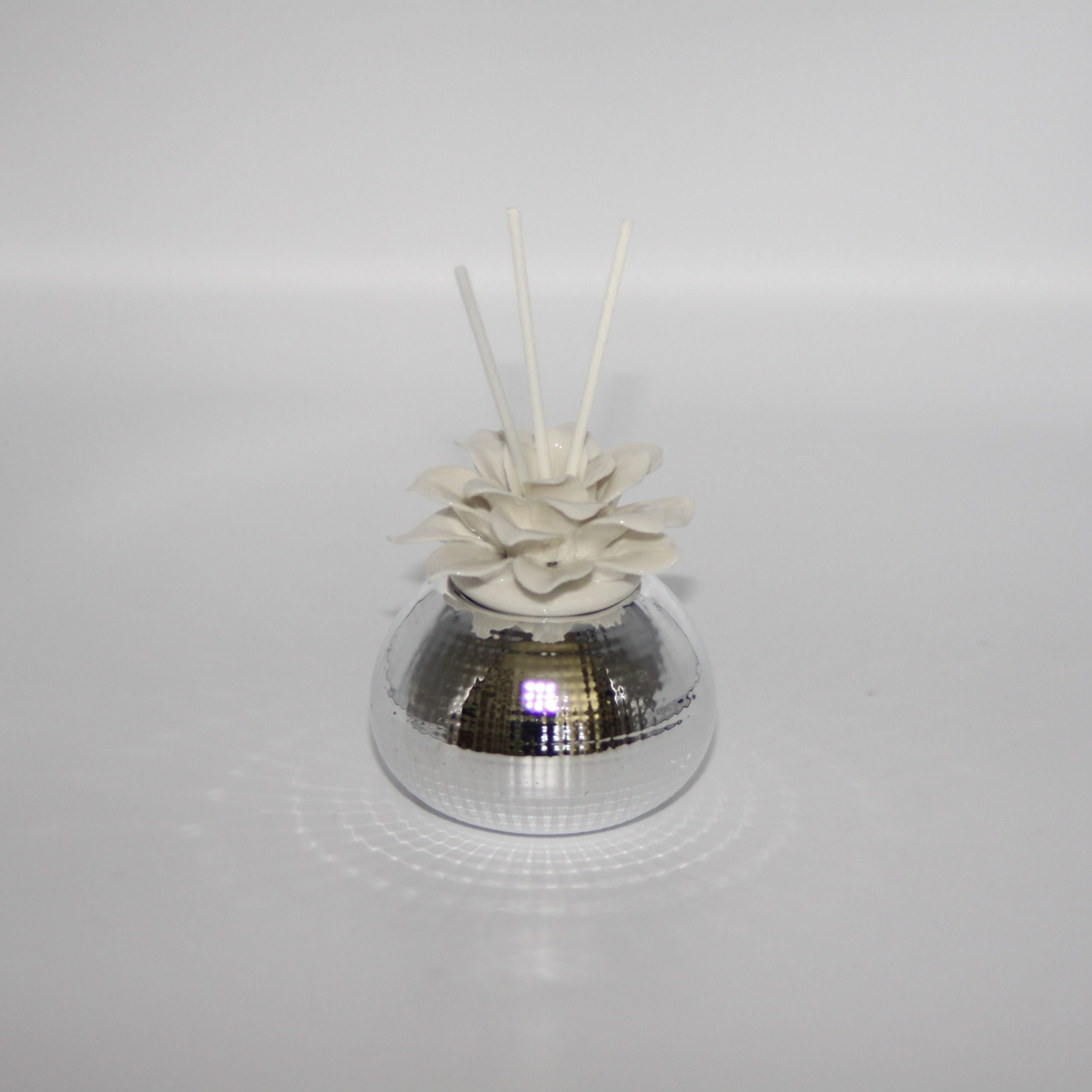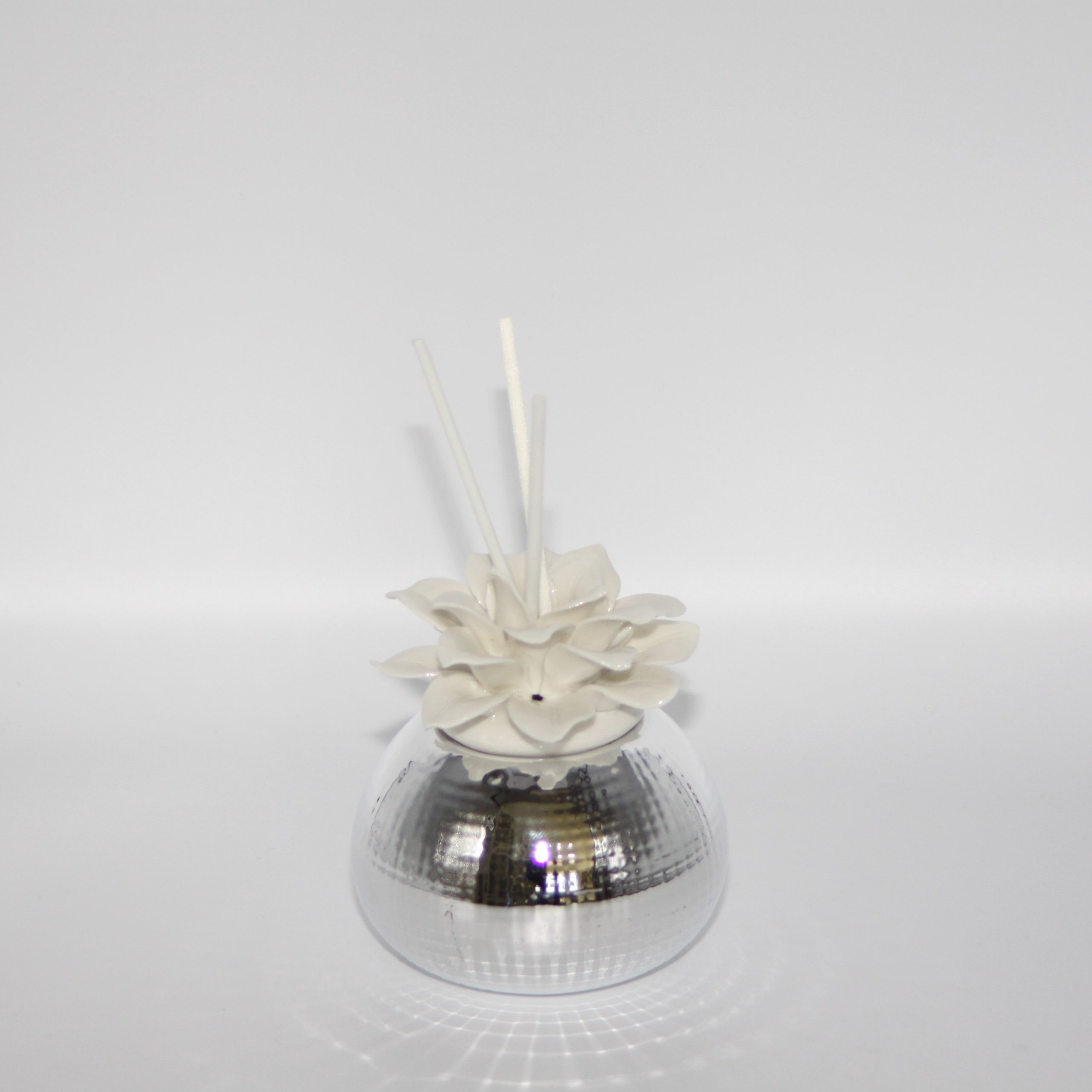 Profumatore con fior di loto in porcellana e base in argento che dona importanza all’articolo e può essere scelto come bomboniera per varie cerimonie. Dimensione: 10×9 cm