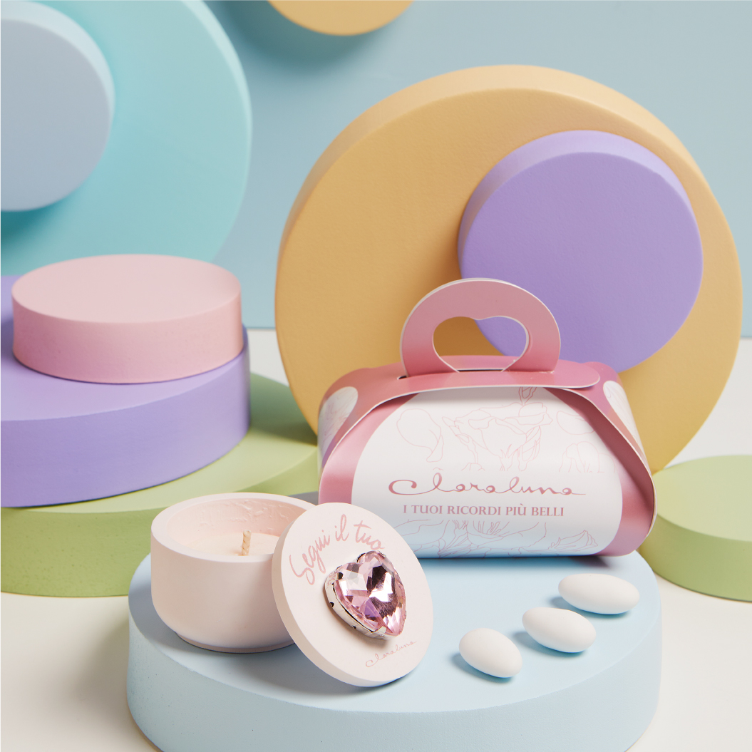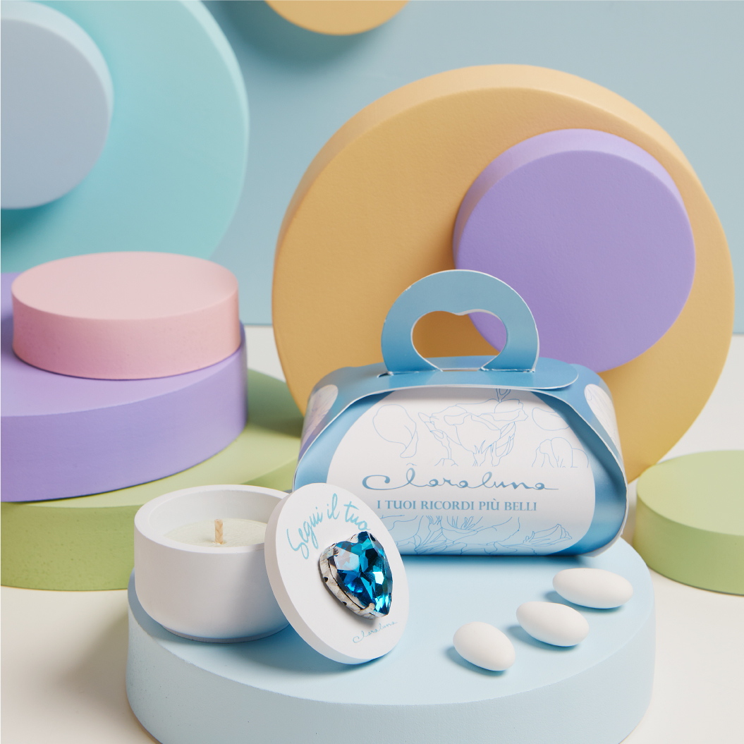 Se scegli di ricevere la bomboniera già confezionata, pensiamo a tutto noi! La confezione predisposta per questo articolo è la scatola “Botanica” che si vede tra le immagini; questa tipologia di scatola non può essere cambiata né nella dimensione e né il colore. Il porta confetti è incluso e, in base alla scatola, verrà inserito all’interno o all’esterno.