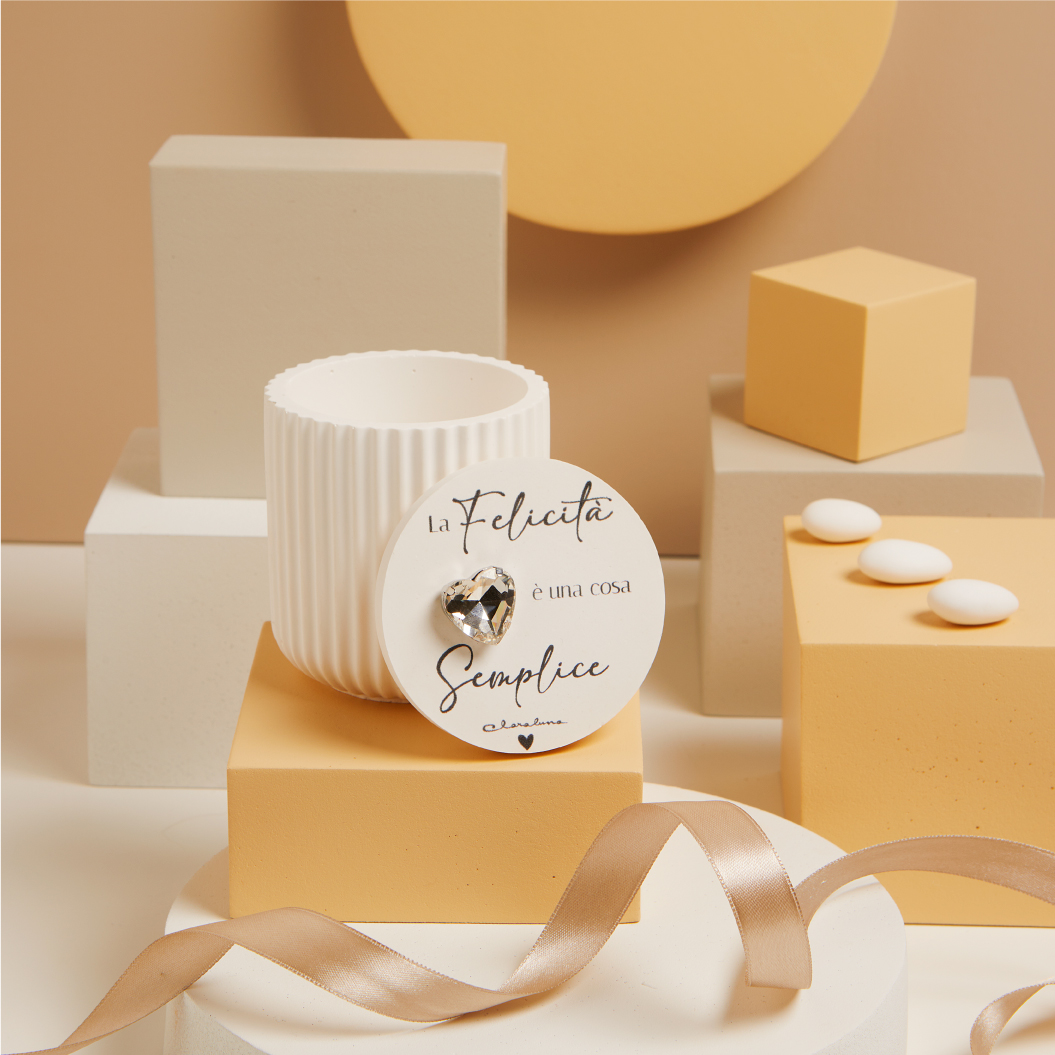 Se scegli di ricevere la bomboniera già confezionata, pensiamo a tutto noi! La confezione predisposta per questo articolo è la scatola “Botanica” che si vede tra le immagini; questa tipologia di scatola non può essere cambiata né nella dimensione e né il colore. Tra le immagini è possibile vedere altre varianti di scatola previsti in base alla bomboniera: puoi scegliere quella che preferisci e comunicarlo nelle note al momento dell’ordine. Tuttavia, vogliamo assicurare ai clienti la miglior soluzione per ricevere le bomboniere intatte, per cui è necessaria una scatola che si adatti al meglio alla vostra bomboniera; per questo motivo il nostro staff sconsiglia di scegliere le scatole “Fiocco” e “Shopper”. Il porta confetti è incluso e, in base alla scatola, verrà inserito all’interno o all’esterno.
