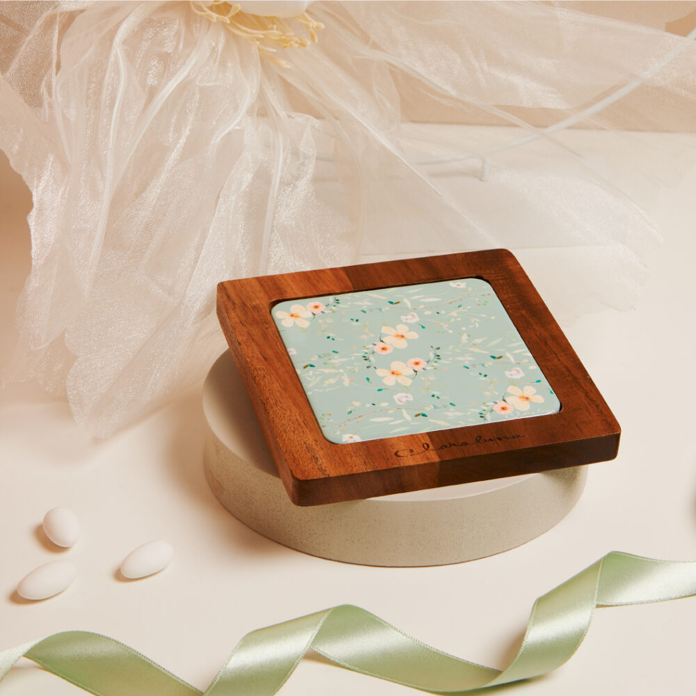 Grazie ai suoi motivi floreali, è un complemento versatile e facilmente adattabile a diversi stili d’arredamento, dal classico al moderno. Scegliere questo sottopentola decorato come bomboniera significa regalare un oggetto che non solo protegge le superfici dal calore, ma rappresenta anche un dolce ricordo del giorno speciale, lasciando un segno di eleganza e cura per i dettagli. Dimensione: 15x15x1,5 cm