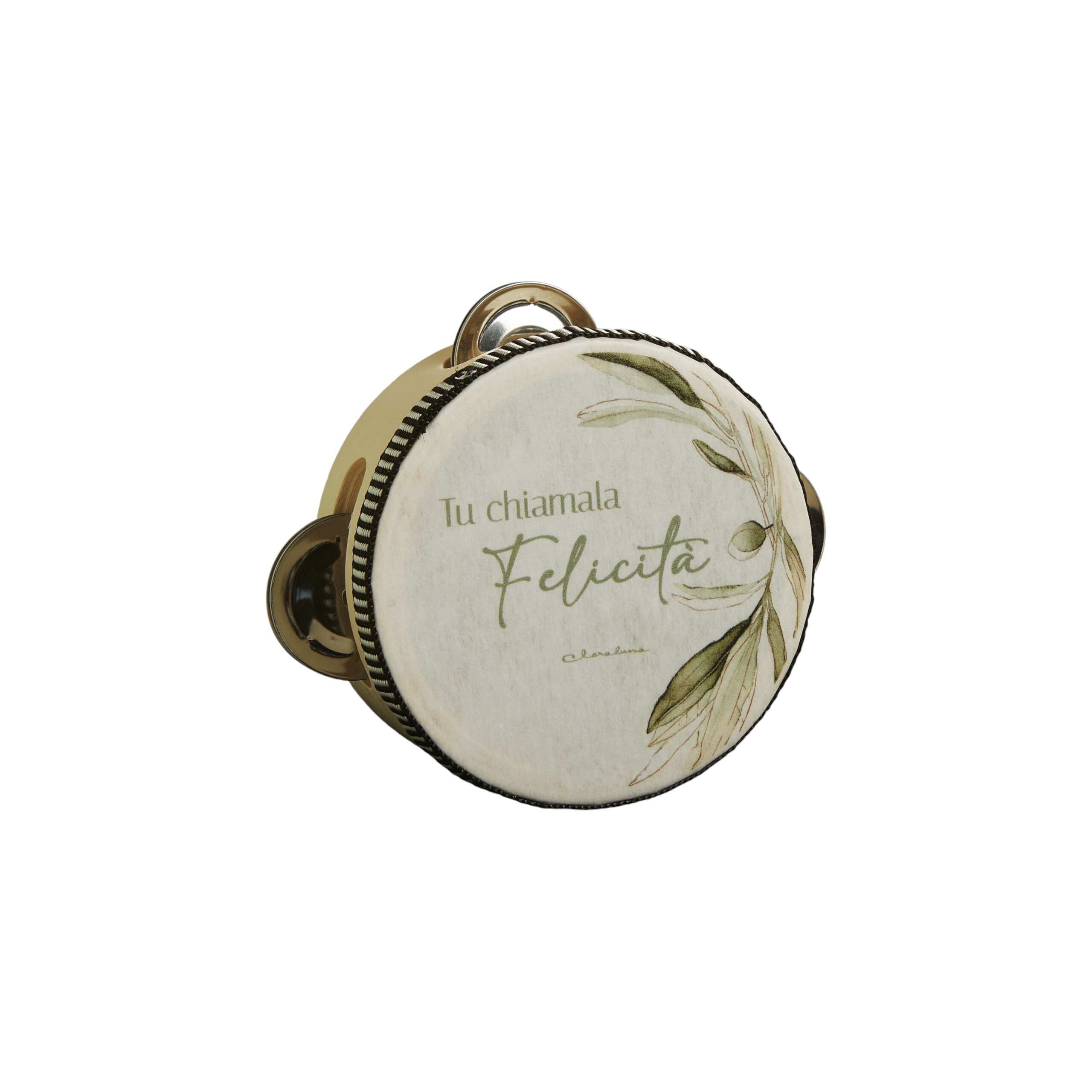 Realizzato con cura artigianale, il tamburello foglie d’ulivo è decorato con motivi vegetali in rilievo e sfumature verde chiaro che richiamano la bellezza dell’ulivo, simbolo di pace, prosperità e autenticità. Il design armonioso lo rende ideale per eventi dal gusto naturale e raffinato.