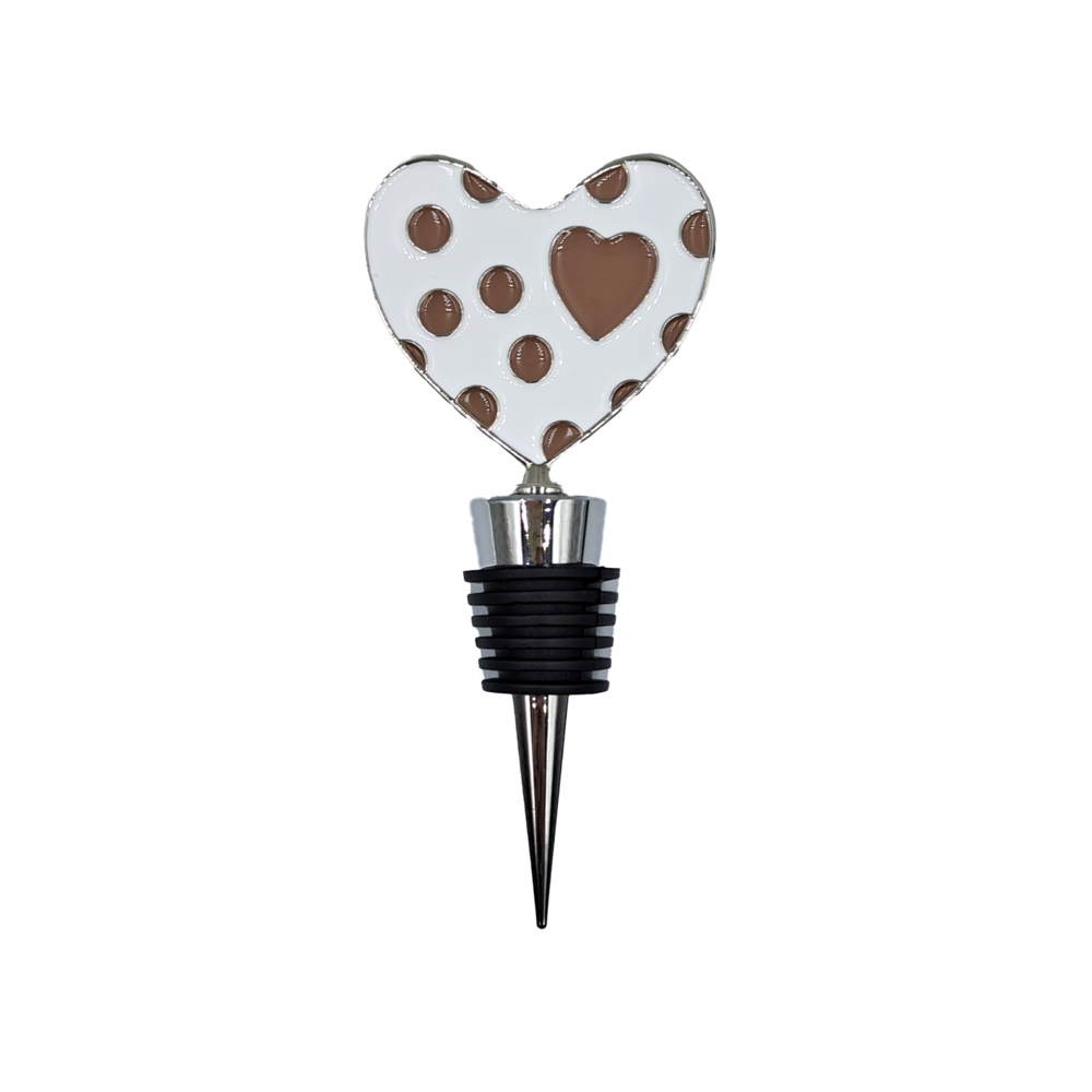 Tappo vino con decorazioni color beige e sfondo bianco. I dettagli sono curati e la delicatezza dell’articolo lo rende perfetto per essere scelto nel giorno della cerimonia, soprattutto per chi cerca un oggetto utile e di buona qualità.