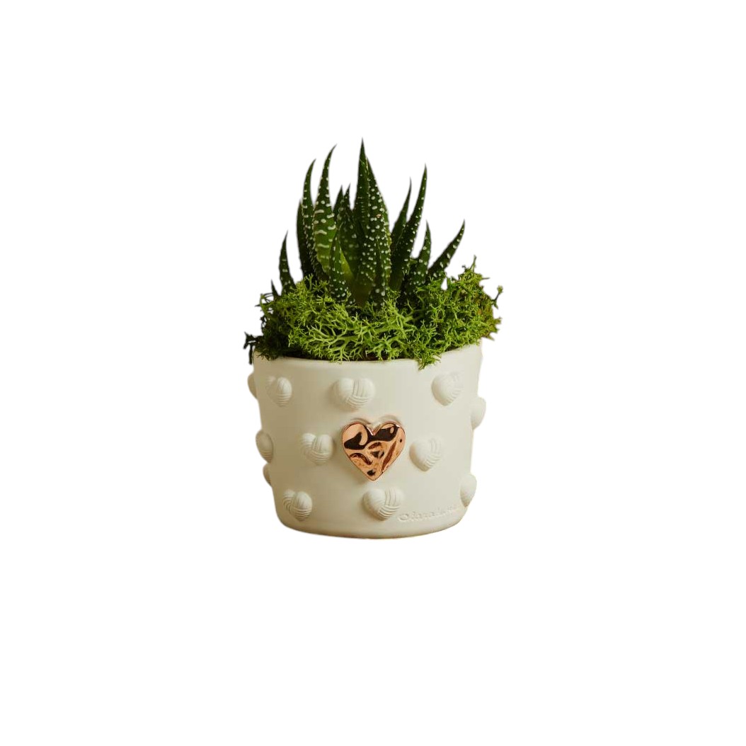 Il vasetto cuore si distingue per la sua forma armoniosa e per la decorazione con cuore colorato applicato sulla superficie. Questo dettaglio romantico e vivace aggiunge un tocco di personalità e dolcezza, rendendo la bomboniera un complemento d’arredo versatile e capace di adattarsi a qualsiasi ambiente. La confezione del vasetto cuore include una piantina, pronta per essere coltivata e curata. Questo elemento naturale rende la bomboniera ancora più speciale, trasformandola in un simbolo di crescita e di vita. Un gesto semplice che porta freschezza e armonia negli spazi domestici, regalando emozioni autentiche. Dimensione: 6×5,5 cm
