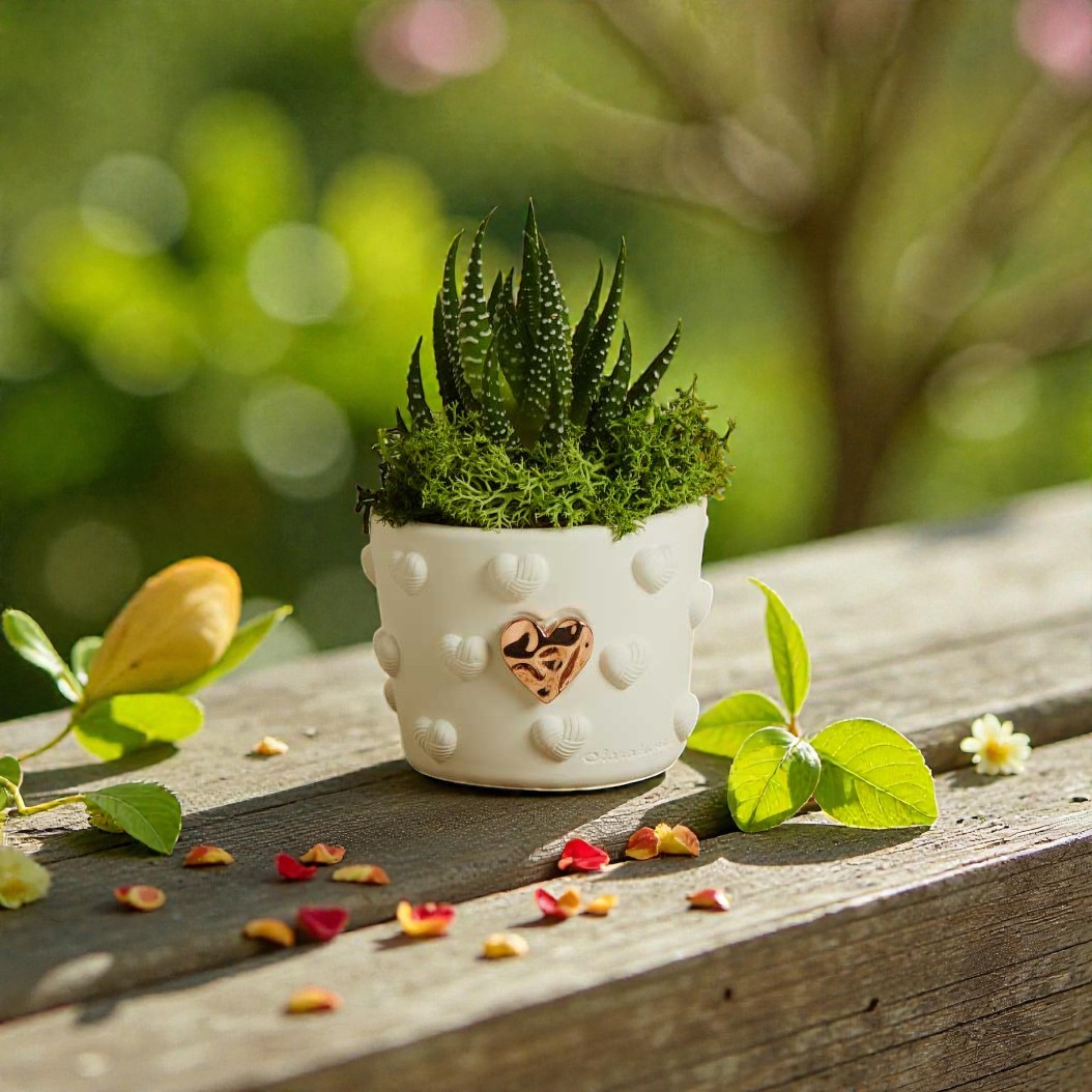 La confezione del vasetto cuore include una piantina, pronta per essere coltivata e curata. Questo elemento naturale rende la bomboniera ancora più speciale, trasformandola in un simbolo di crescita e di vita. Un gesto semplice che porta freschezza e armonia negli spazi domestici, regalando emozioni autentiche.