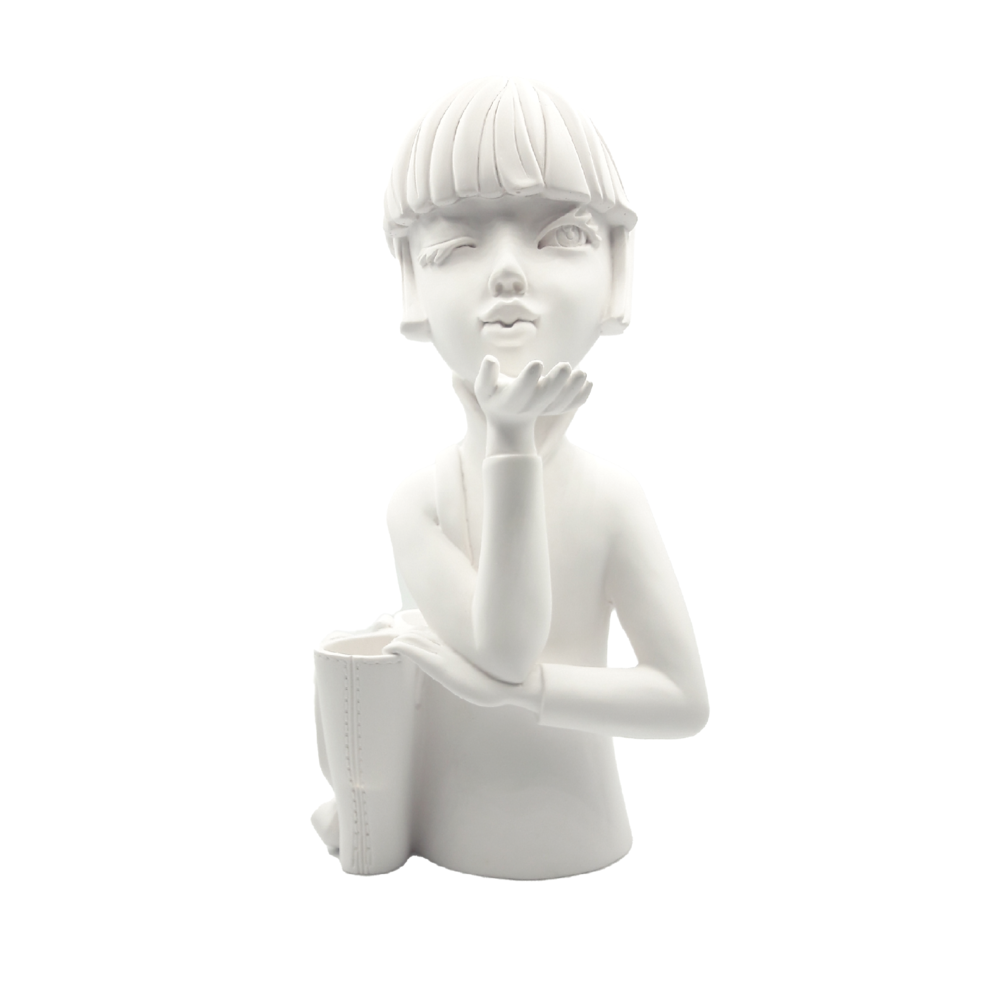 Vasetto con viso donna realizzato in resina, colore cipria. La base è bianca, invece le labbra dorato donano valore all’articolo. Ideale per essere scelto per gli ambienti moderni. Dimensione: h. 13 cm. La piantina non è inclusa nell’articolo, ma è solo a scopo illustrativo.