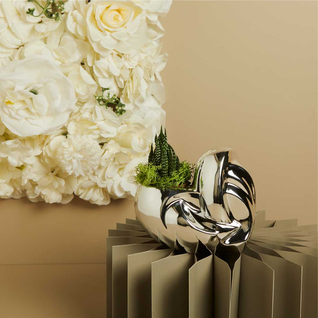 Ogni vaso cuore design è accompagnato da una piantina vera, scelta per la sua resistenza e bellezza. Che si tratti di una piantina grassa, aromatica o fiorita, sarà un simbolo di crescita e continuità, capace di evocare nel tempo il ricordo di un giorno speciale.