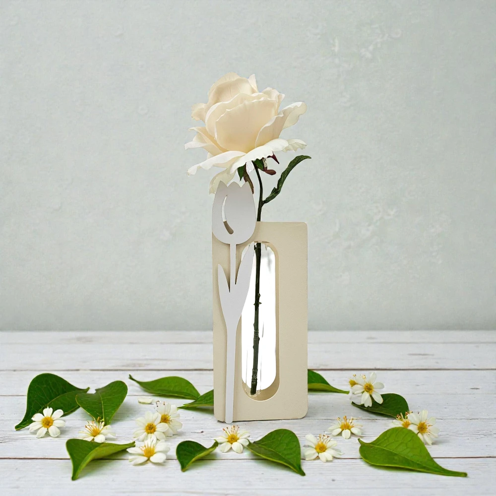 Grazie al suo contenitore interno in vetro, il vaso per monofiore è perfetto per ospitare sia fiori freschi che artificiali. È la soluzione ideale per esaltare una rosa, un tulipano o qualsiasi fiore singolo, trasformandolo in un elemento decorativo di grande impatto visivo. Le dimensioni compatte consentono di posizionarlo su mensole, tavolini, consolle o scrivanie senza occupare troppo spazio.