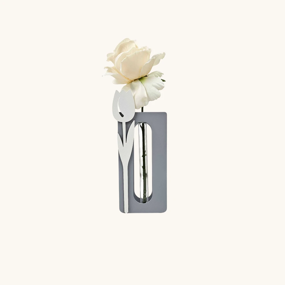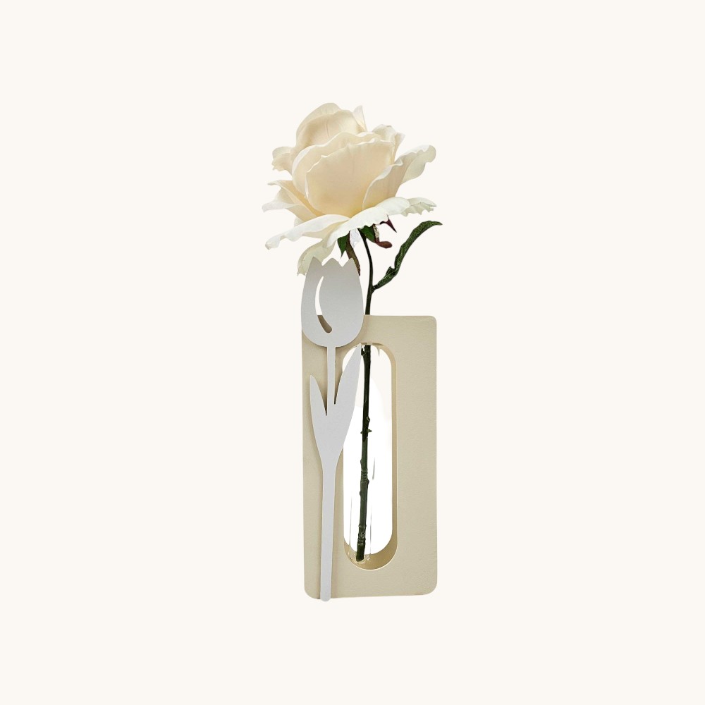 Il vaso monofiore è disponibile in diverse varianti di colore, dalle tonalità neutre come avorio e tortora fino a sfumature più romantiche o moderne. Questa versatilità cromatica lo rende facilmente abbinabile a qualsiasi tipo di arredamento, adattandosi con armonia a soggiorni, camere da letto, ingressi o uffici. La finitura opaca e il dettaglio decorativo floreale applicato frontalmente aggiungono un elemento distintivo e delicato.