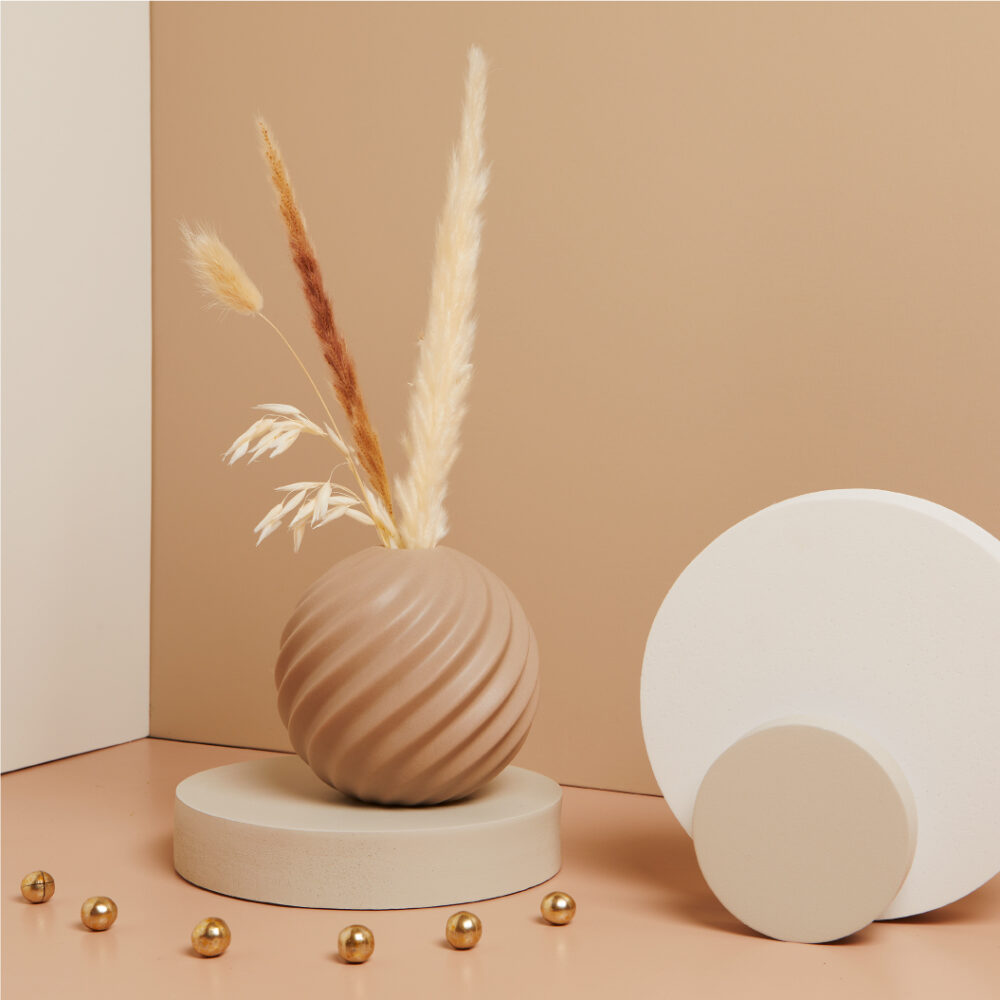 Realizzato con materiali di alta qualità, questo vaso tondo con onde include una selezione di fiori, scelta per donare un tocco di colore naturale che si abbina perfettamente alla sua estetica. Scegliendo questo vaso come bomboniera, si regala agli invitati un oggetto decorativo funzionale e raffinato, perfetto per ricordare un momento speciale con eleganza e semplicità. Dimensione: 13x13x13 cm