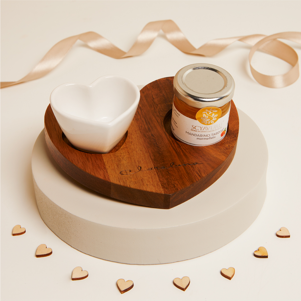 Vassoio forma cuore con ciotolina e marmellata mandarino – Bomboniere Claraluna