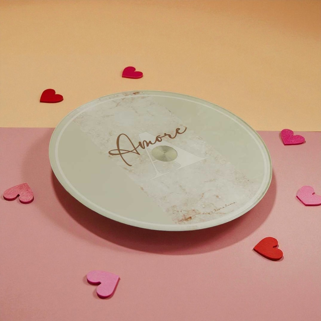Il vassoio girevole in vetro con la scritta “amore” è una bomboniera elegante e simbolica, pensata per chi desidera lasciare un ricordo utile e ricco di significato. Perfetto per matrimoni, anniversari, comunioni e battesimi, unisce funzionalità e messaggio in un oggetto che parla al cuore.